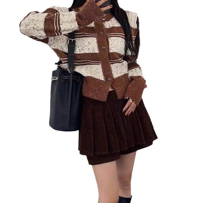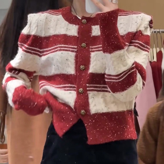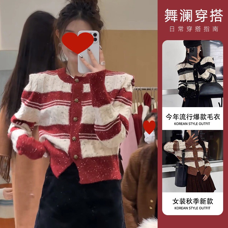 | nameOriginal | Chanel Style French Top Round Neck Single Breasted Fashionable Outer Striped Knit Cardigan |