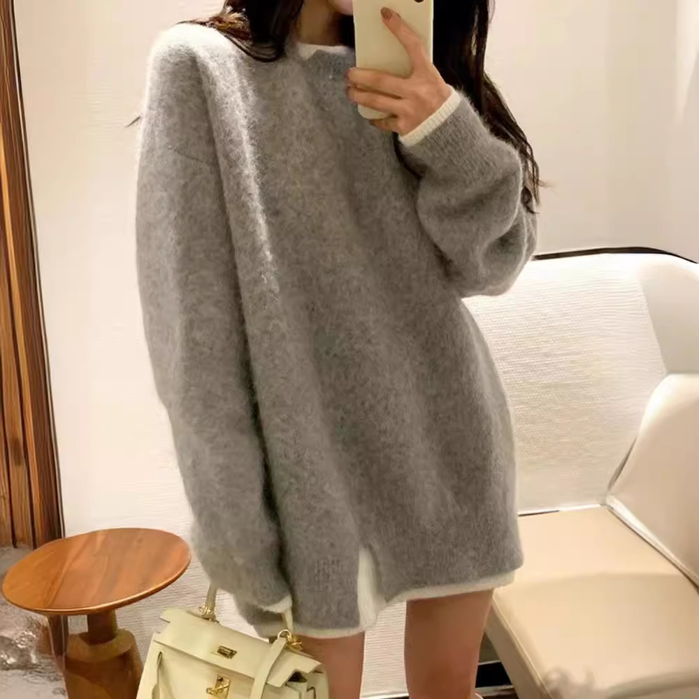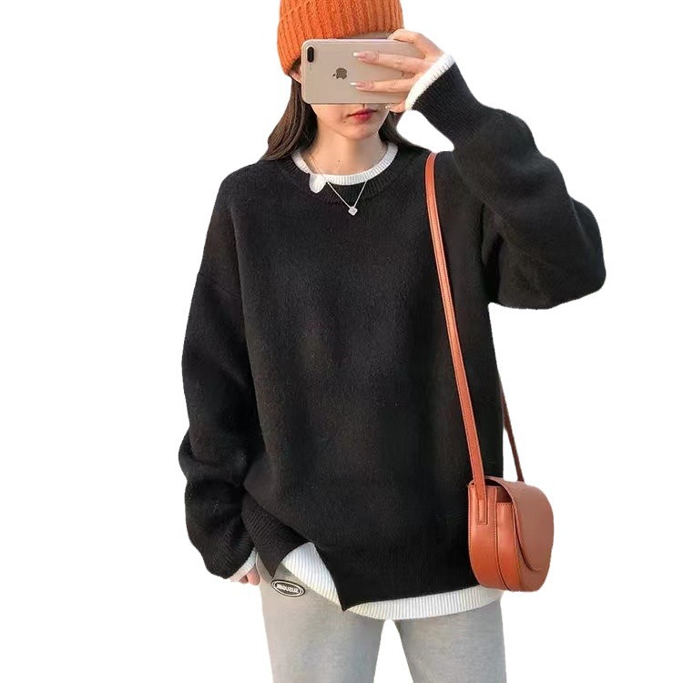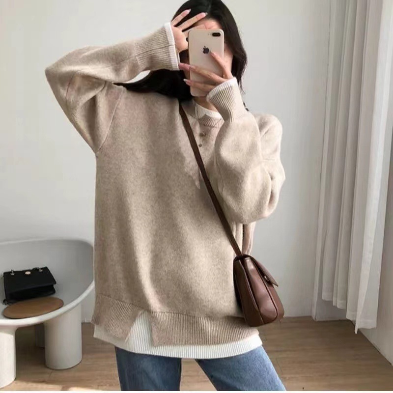 | nameOriginal | Crewneck Pullover Soft Waxy Fake Two-piece Pink Sweater Women's Autumn and Winter New Lazy Style Thickened Knitted Top Autumn |