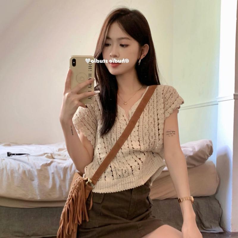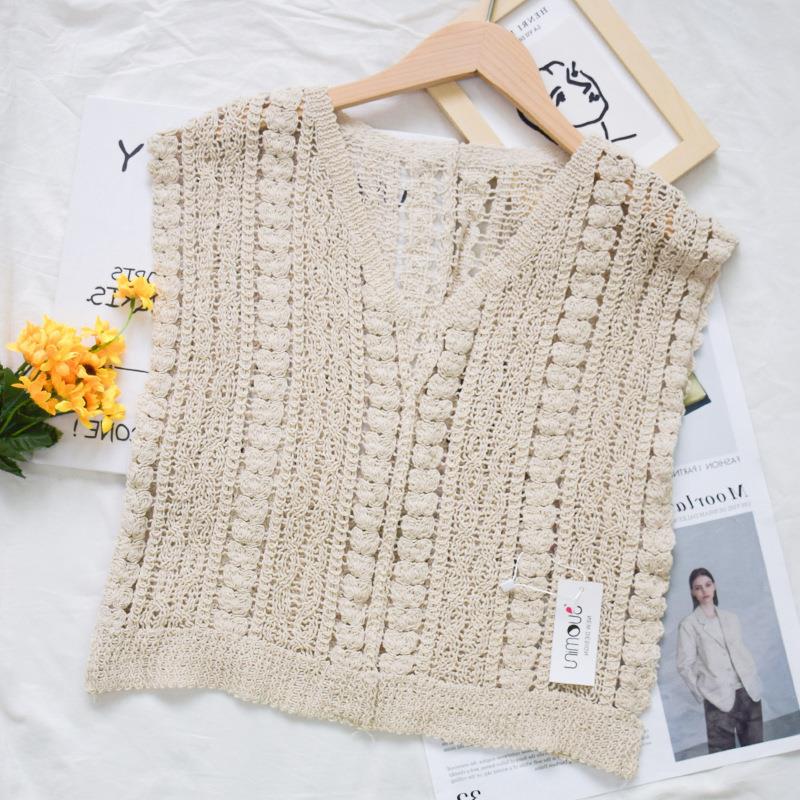 Crochet Hollow Knitted Vest Vest Women’s Summer Loose Outer Wear V-neck Sleeveless Vest Short Top