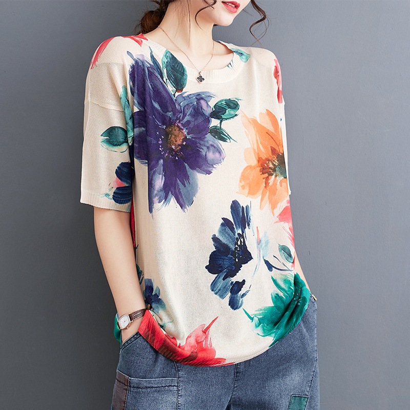 | nameOriginal | 2023 Summer New Korean Style Artistic Retro Loose Casual Large Size Short-sleeved T-shirt for Chubby Girls |