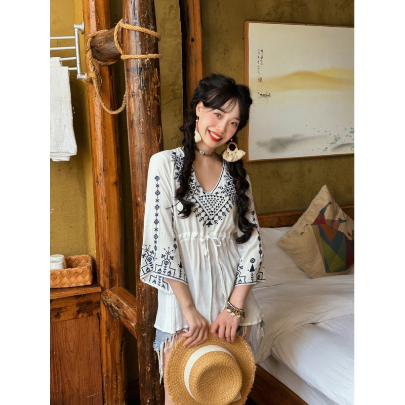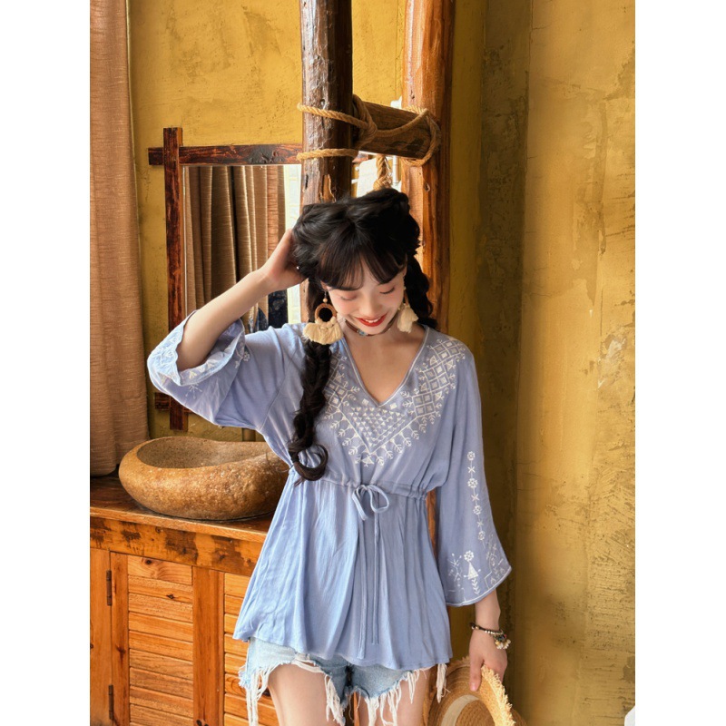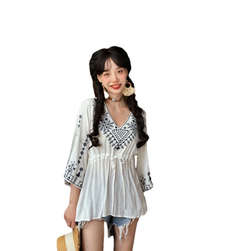 | nameOriginal | June New Ethnic Style High-end Embroidered Short Top Three-color Spot Home Clothes Short-sleeved Art Pure Desire |
