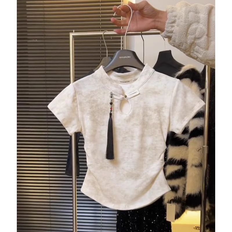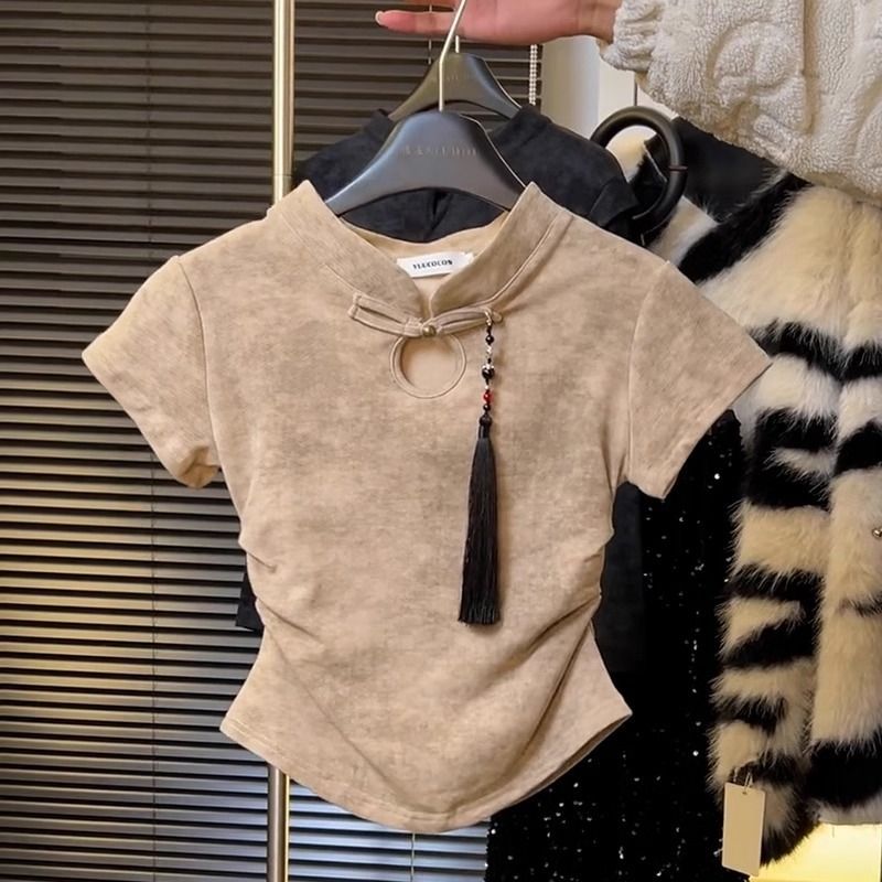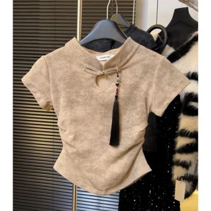 | nameOriginal | New Chinese Style National Style Buckle Dye Short-sleeved Shirt Women 2024 New Slim Look Short Chic Beautiful Tops |