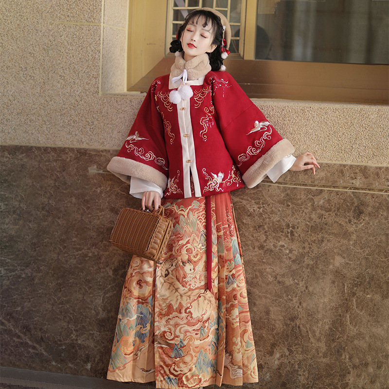 | nameOriginal | Ming-made Hanfu women's winter adult maxi dress suit new New Year greeting clothing fleece-lined thickened Chinese style Daily ancient costume |