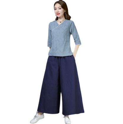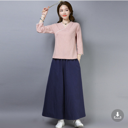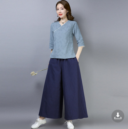 | nameOriginal | Autumn 2023 Chinese style cotton linen yoga clothes suit women's tea clothing Hanfu top wide leg pants two-piece suit |