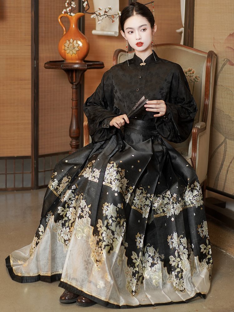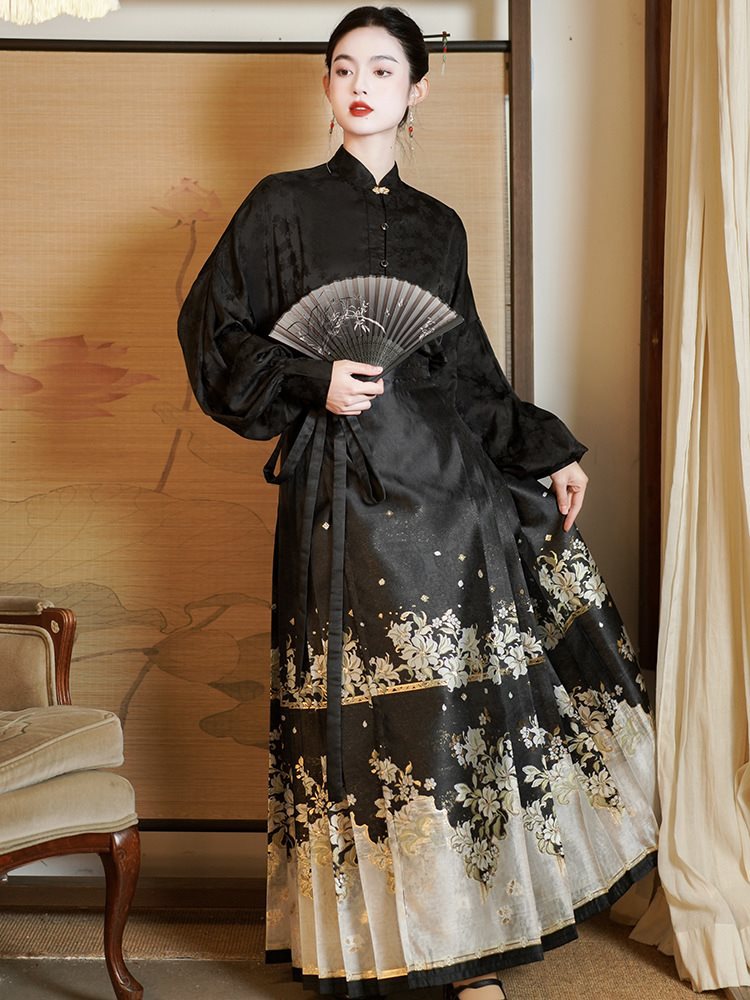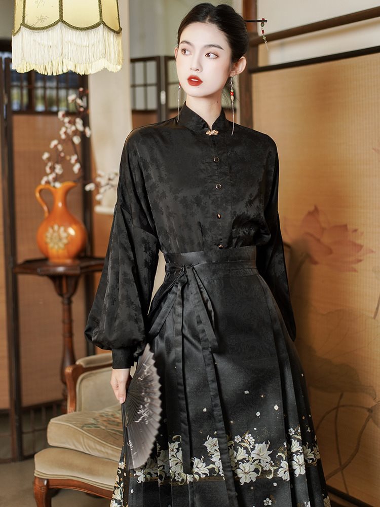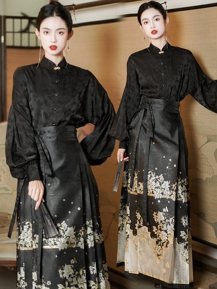 | nameOriginal | Spring 2024 New Heavy Industry Zhijin Hanfu Horse Face Skirt Commuter Daily Travel Chinese Style Vertical Collar Long Sleeve Shirt |