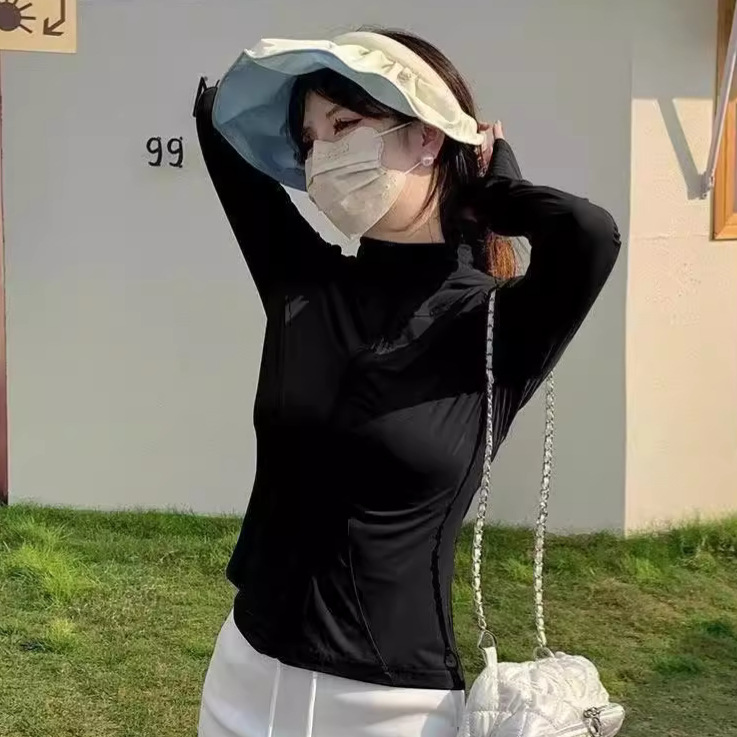Vertical Collar Yoga Sun Protection Clothing 2024 Summer Slim Fitness Yoga Slimming All-match UV Protection Sun Protection Clothing for Women