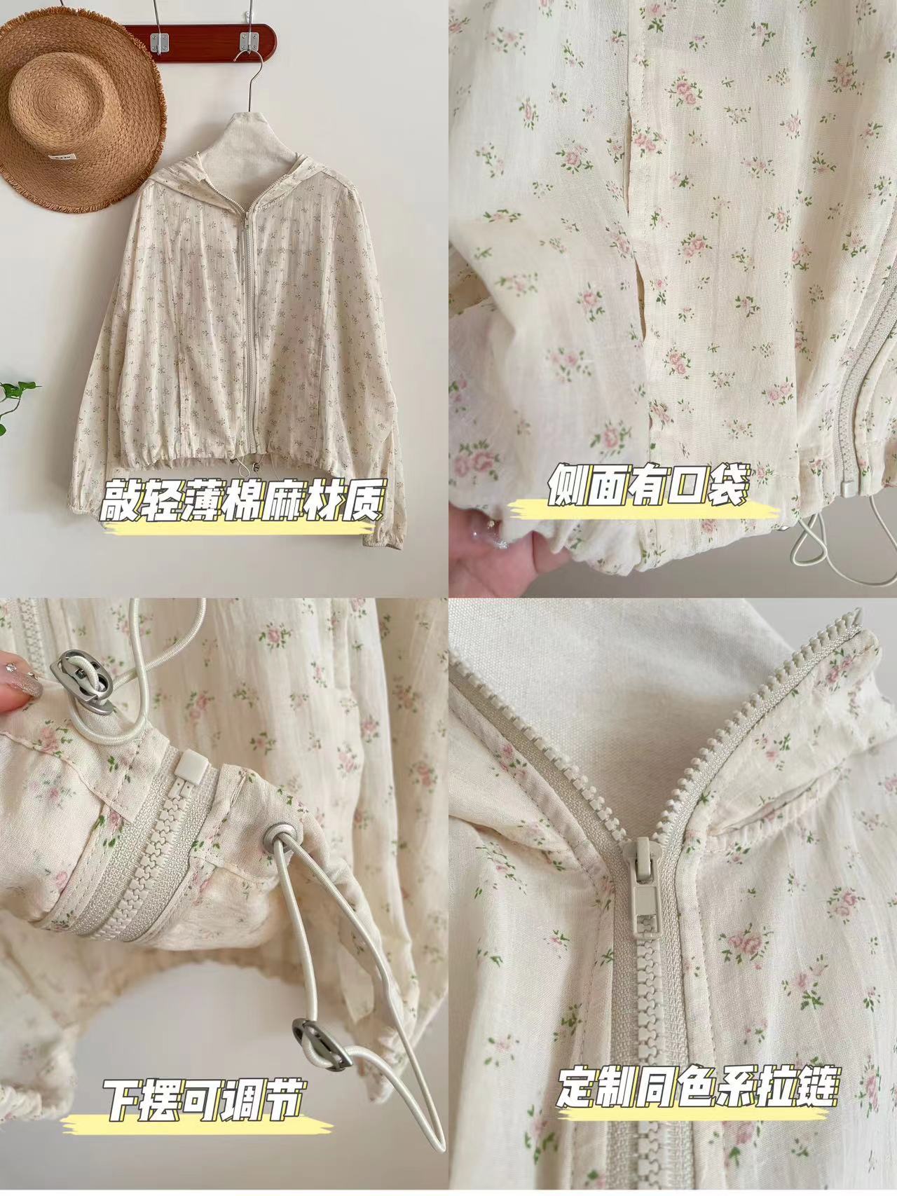| nameOriginal | Bloggers recommend 2024 Summer Korean-style Floral Hooded Jacket Age-reducing Floral Sunscreen Jacket |