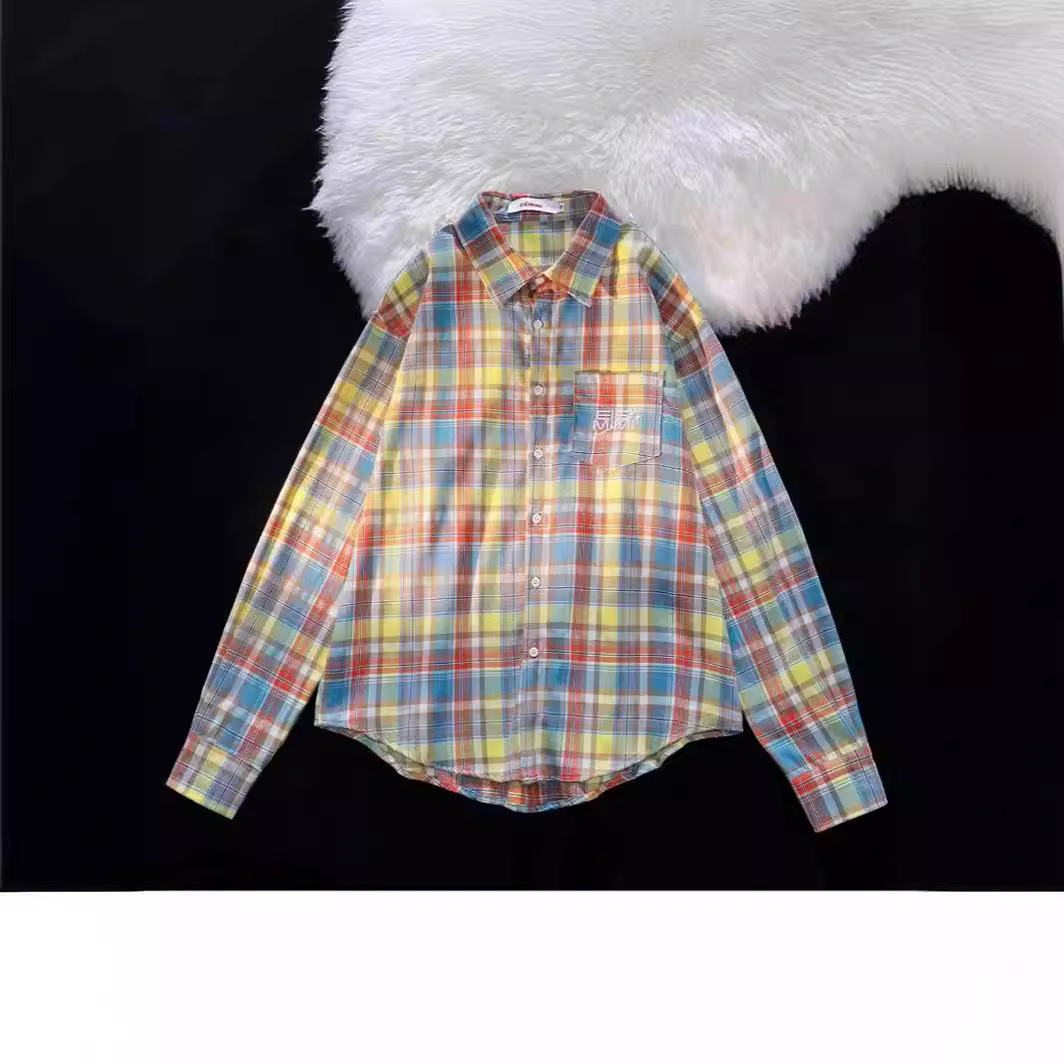 | nameOriginal | Colorful Plaid Shirt Coat Women's 2024 Summer Thin Small Loose Japanese Style Retro Sun Protection Long Sleeve Shirt |