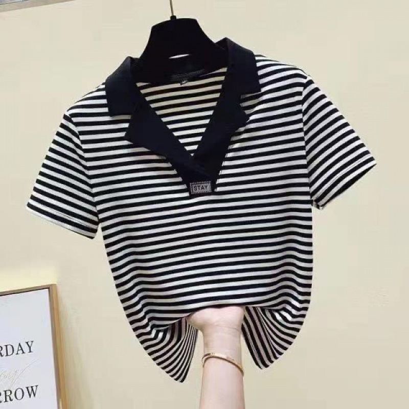 | nameOriginal | Summer New Striped Polo Shirt Short-sleeved T-shirt Women's Lapel plus size Loose Collar Collar T-shirt for Sports |