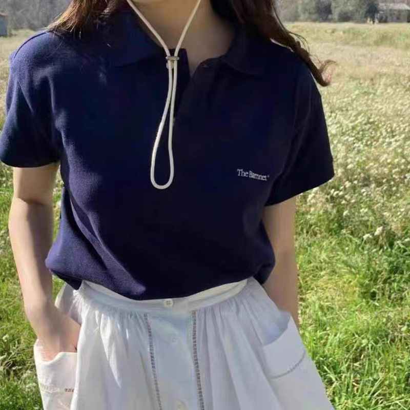 | nameOriginal | The barnnet Knitted Short-sleeved Women's 2024 Summer New Solid Color Slim-fit Half Open Collar Polo Shirt Top |