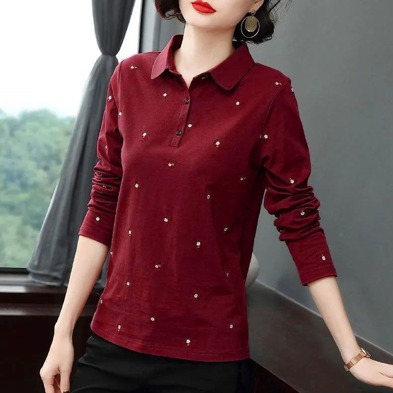 | nameOriginal | 2024 New Polo Shirt Long-sleeved T-shirt Women's Loose plus size Mother's Spring T-shirt Slimming Top Base Shirt |