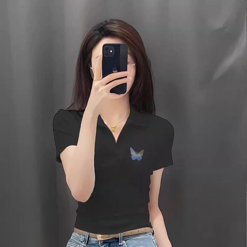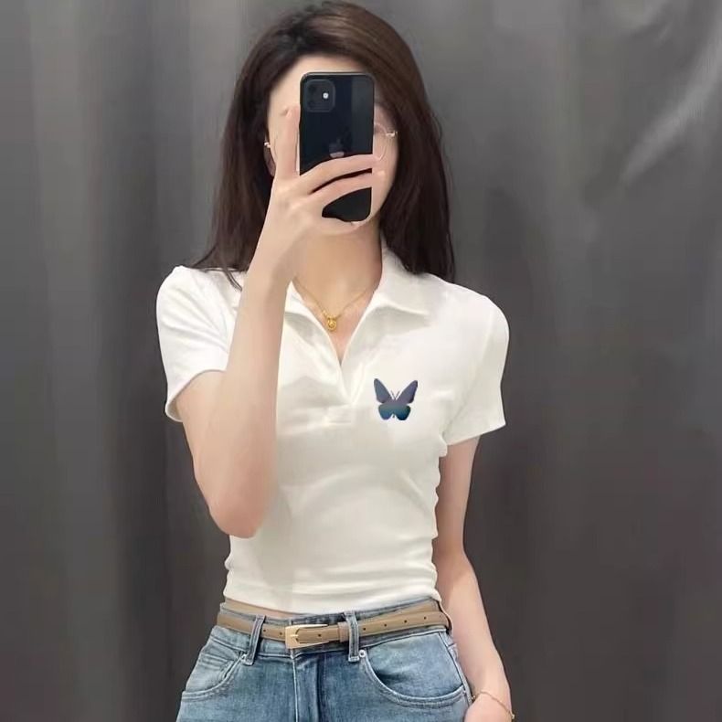 | nameOriginal | Summer New Arrival No-button Slim Polo Shirt Short-sleeved T-shirt Women's Lasel Slim-fit Short Top Sports Casual White |