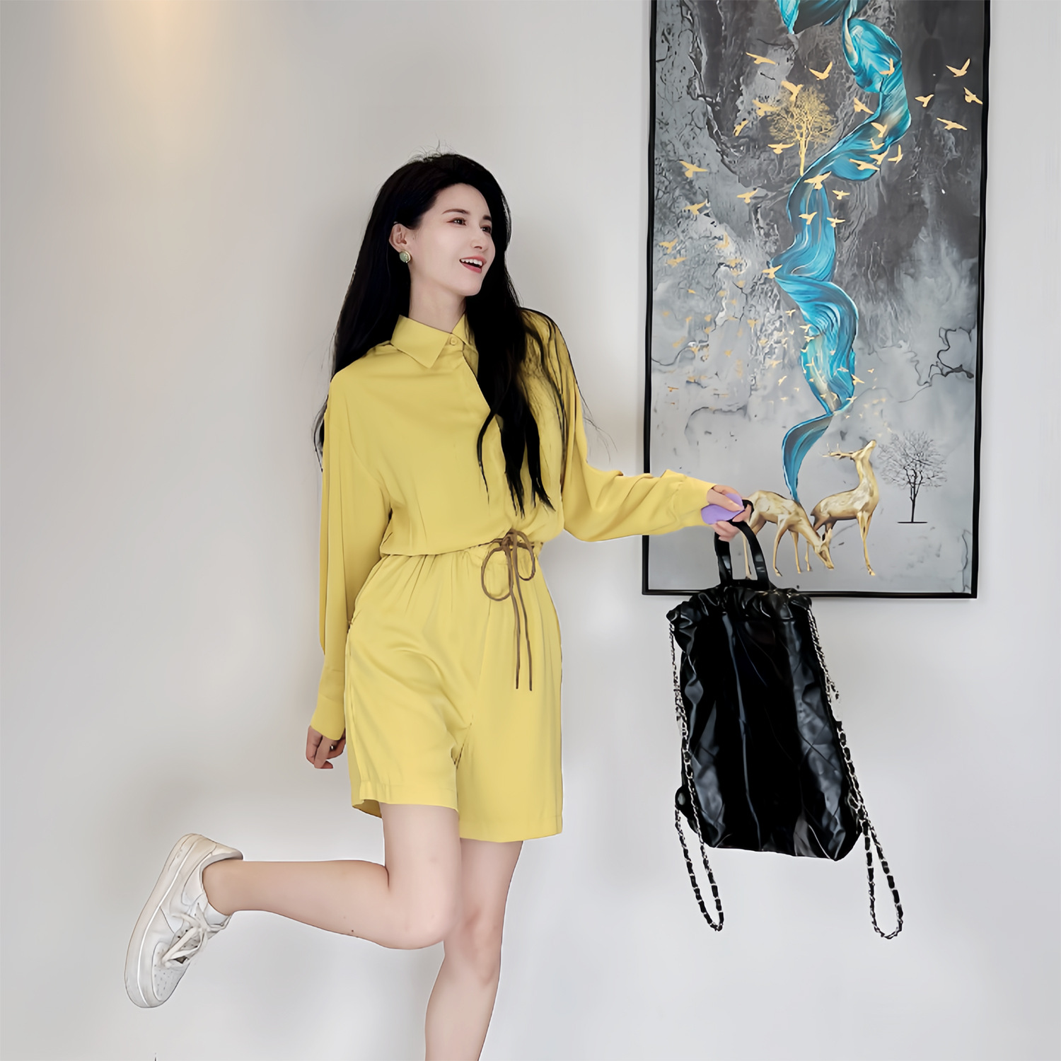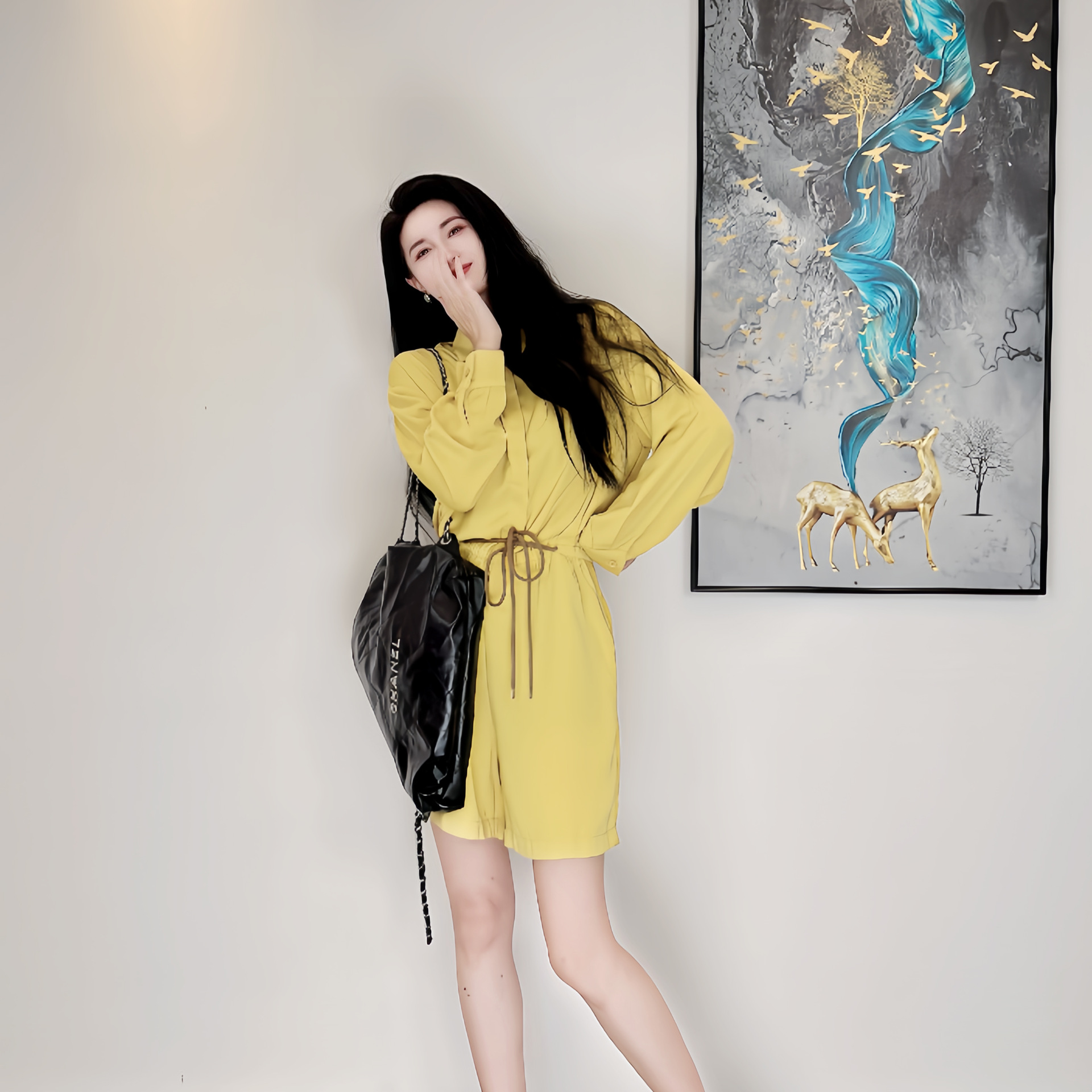 | nameOriginal | 2024 Summer New Liu Yifei Same Yellow Jumpsuit Women's Summer Short-sleeved Shirt dress Shorts Women |
