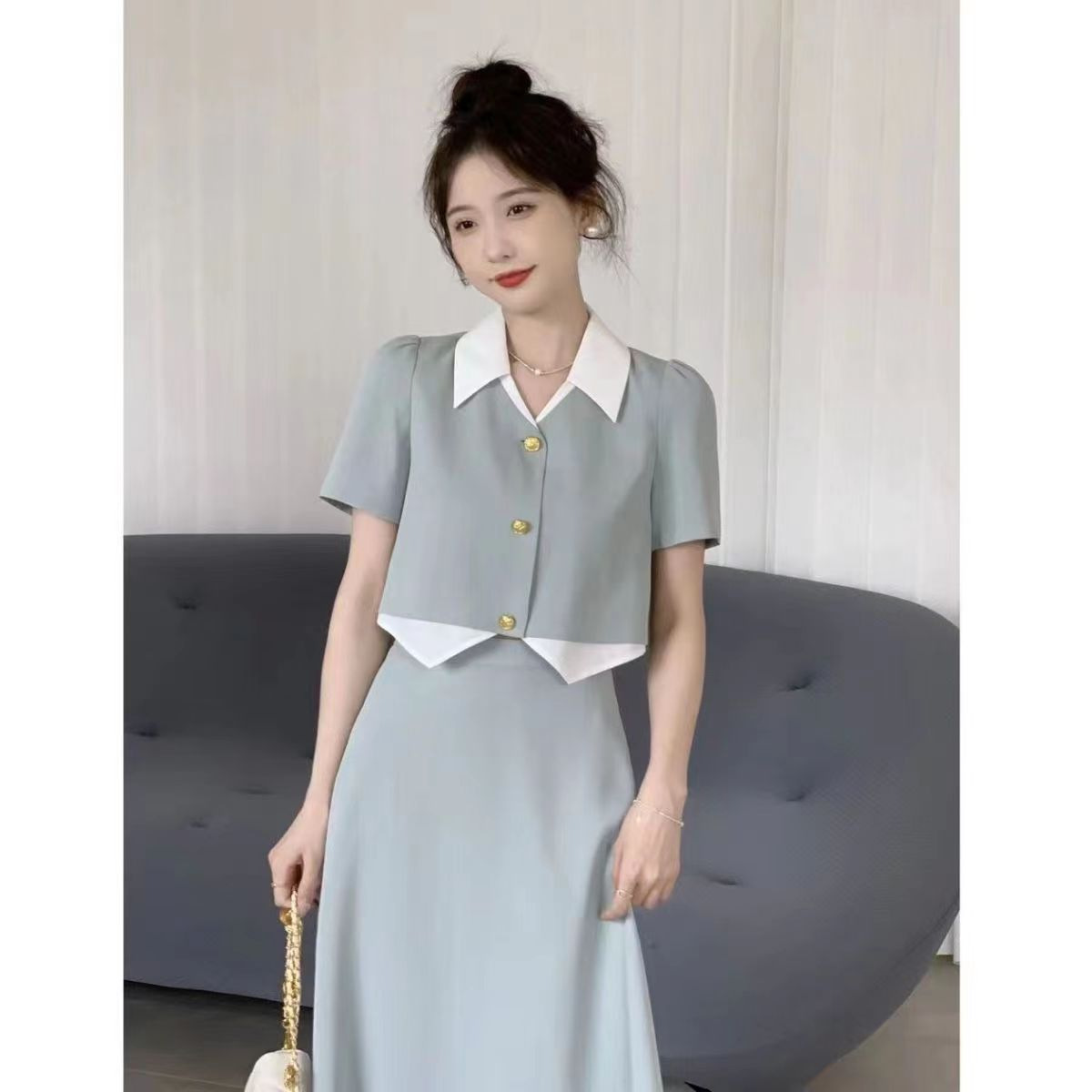| nameOriginal | 2023 Summer New Style Chanel Style Fashion Dress Women's Fake Two-piece Short Top Elegant High-grade Two-piece Fashionable Set |