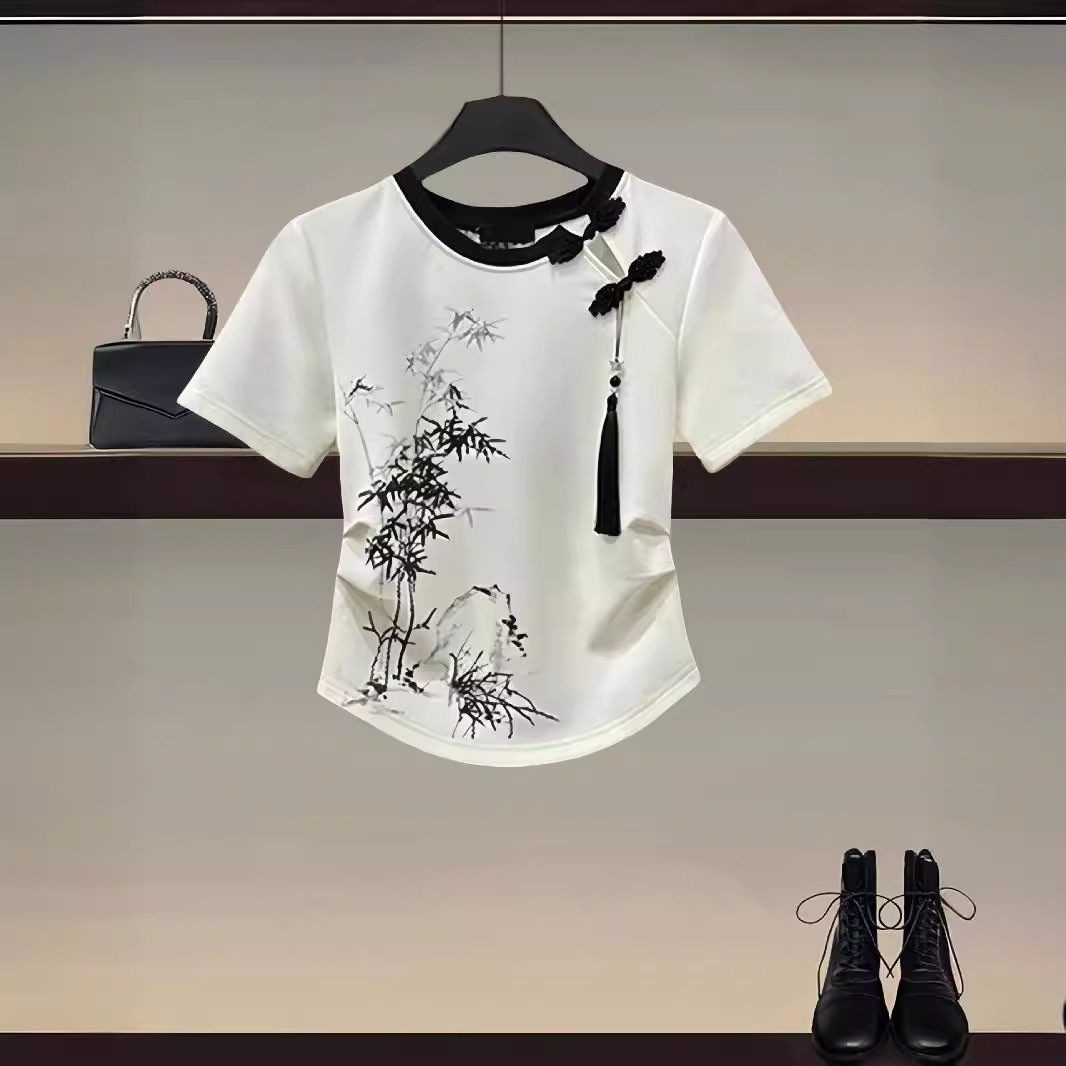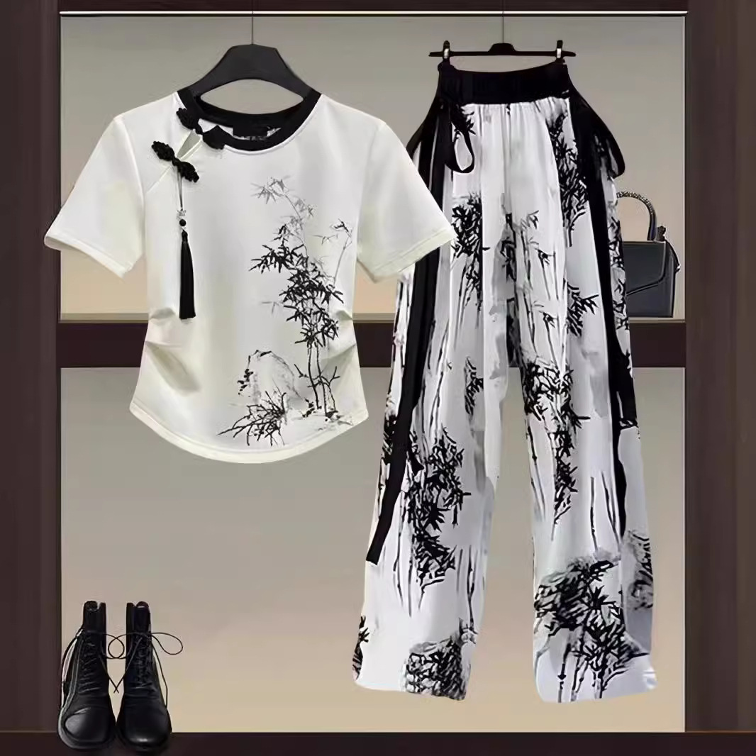 | nameOriginal | New Chinese Style Women's Wear a Set of 2024 New National Style Button T-Shirt National Style Slim Casual Pants Two-Piece Set |