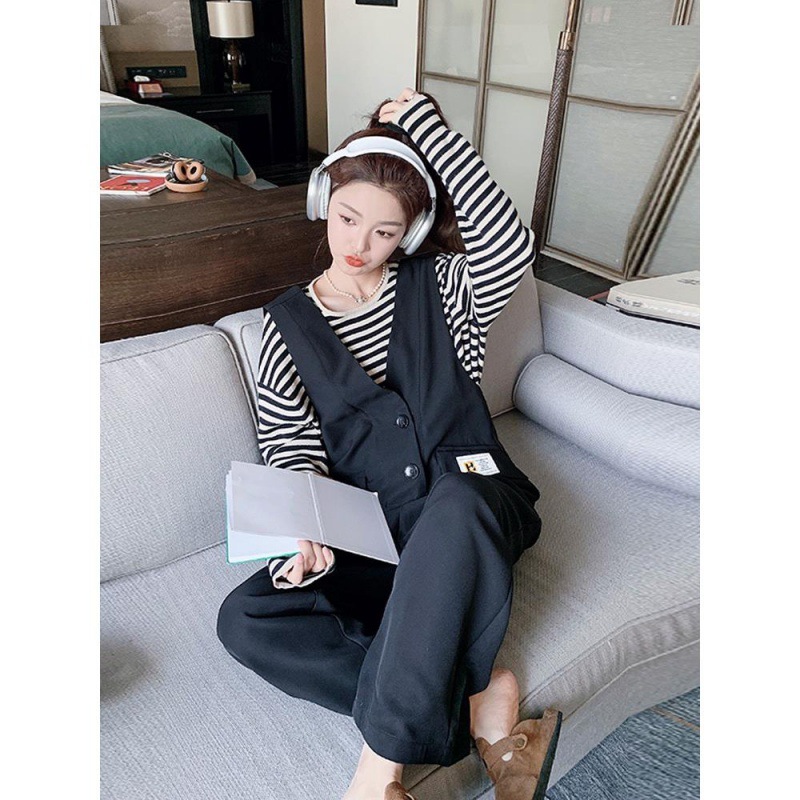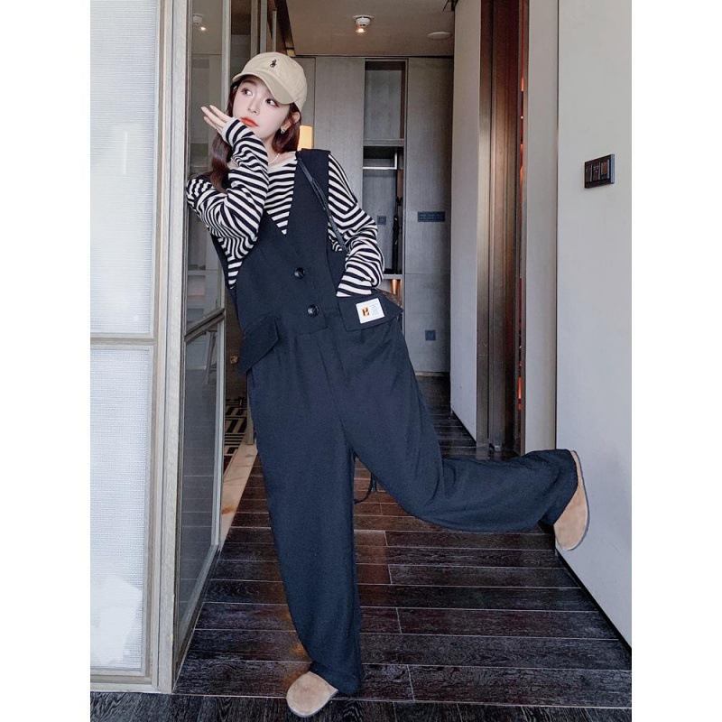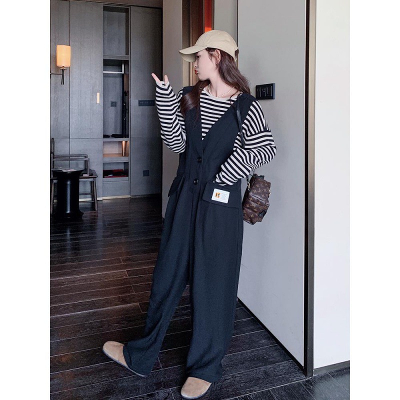 | nameOriginal | Spring and Autumn Hong Kong style casual high-end fashionable western style Internet celebrity age-reducing suspender pants suit fried street fashion two-piece suit for women |