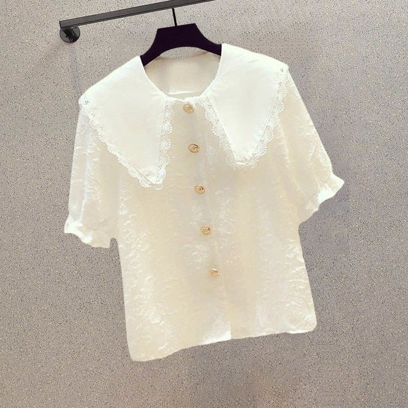 Fashion suit Women 2024 New Stylish Age-reducing Lace Doll Collar Shirt Jeans plus size Slim Two-piece Set