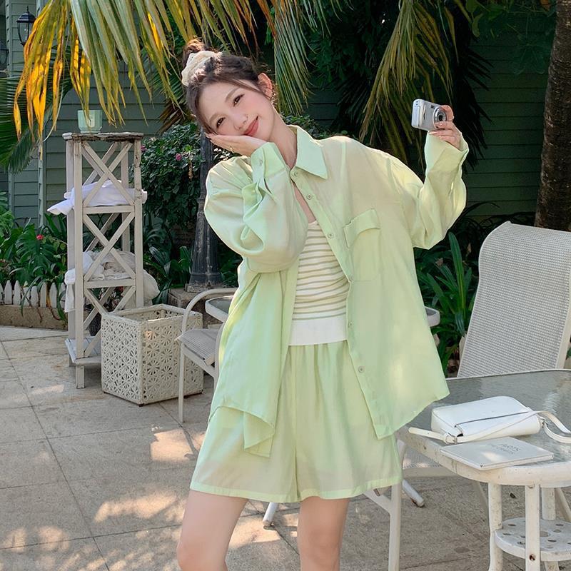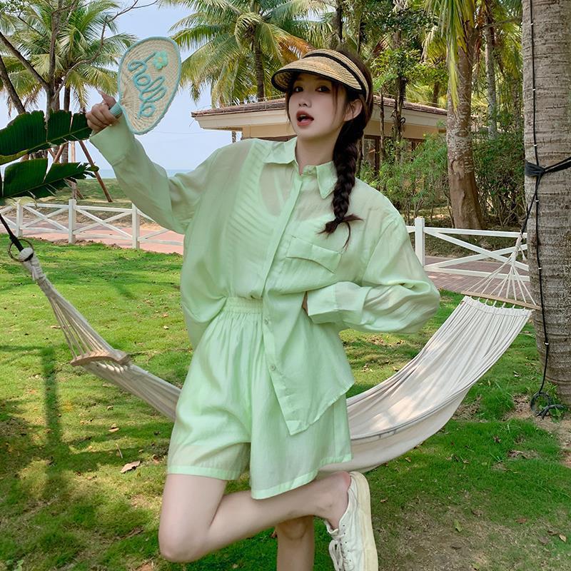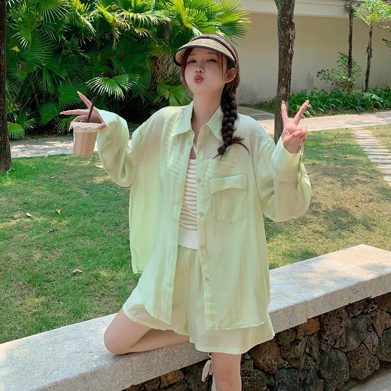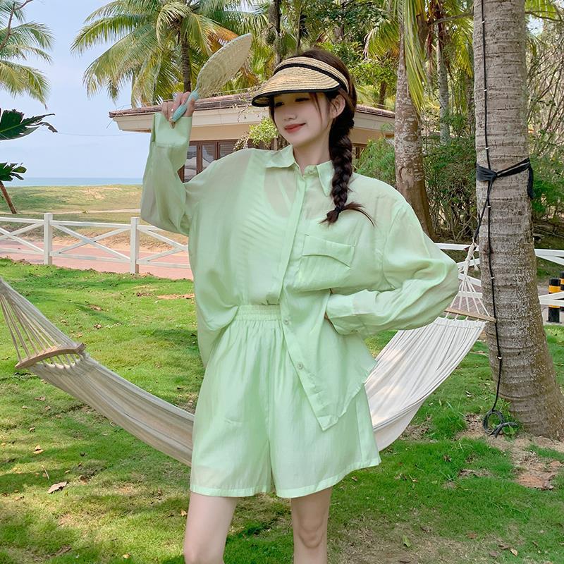 | nameOriginal | Summer dress with a set of women's 2024 summer thin this year's popular small fresh fashion casual sunscreen three-piece set |