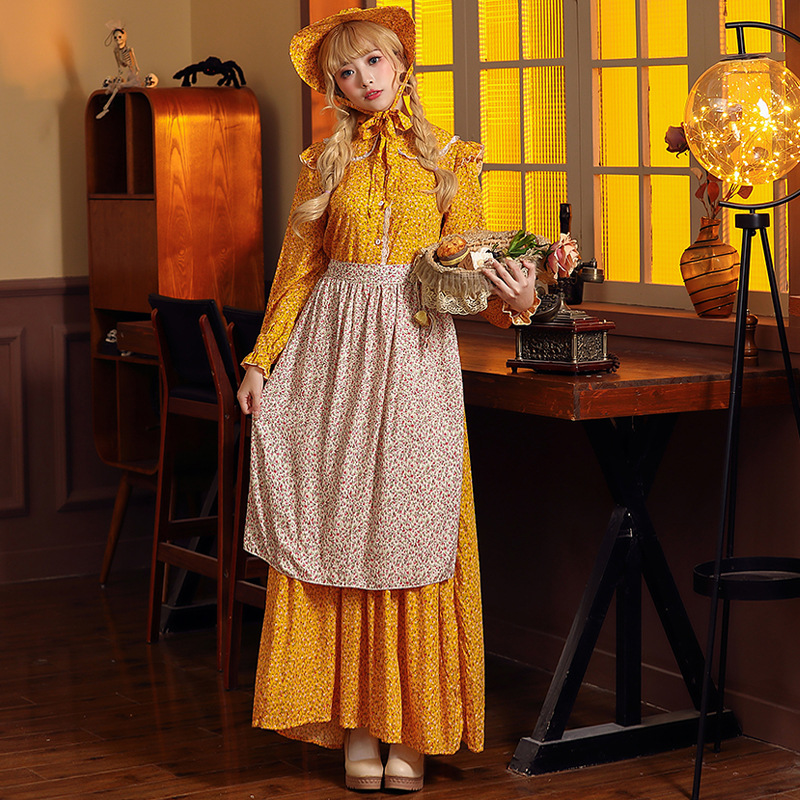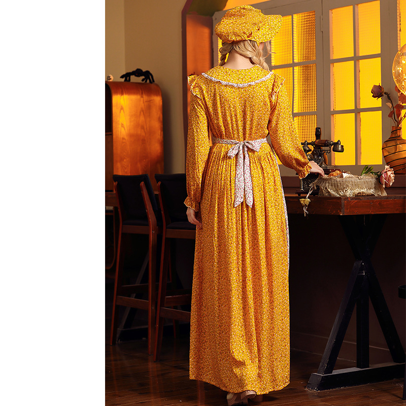 | nameOriginal | Yellow Floral Colonial Girl Amazon Supply Prairie Pioneer Costume Pastoral Dress |
