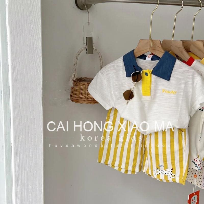 | nameOriginal | South Korea Children's Wear Boys and Girls Fashion Casual Lapel T-Shirt Children's Vertical Pattern Loose Pants Summer Two-piece suit |
