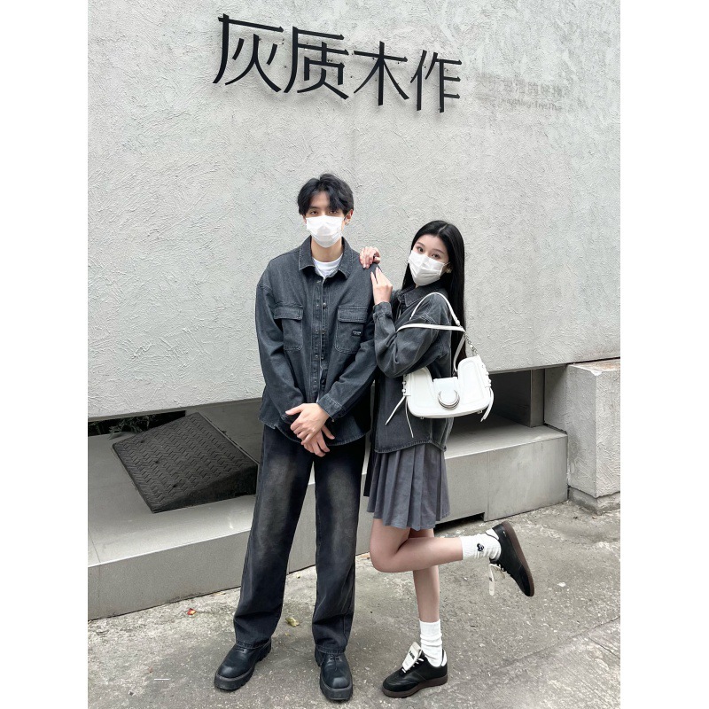 | nameOriginal | A generation of 2024 real shot sweet cool wash black gray Denim coat jacket shirt simple commuting spring and autumn |