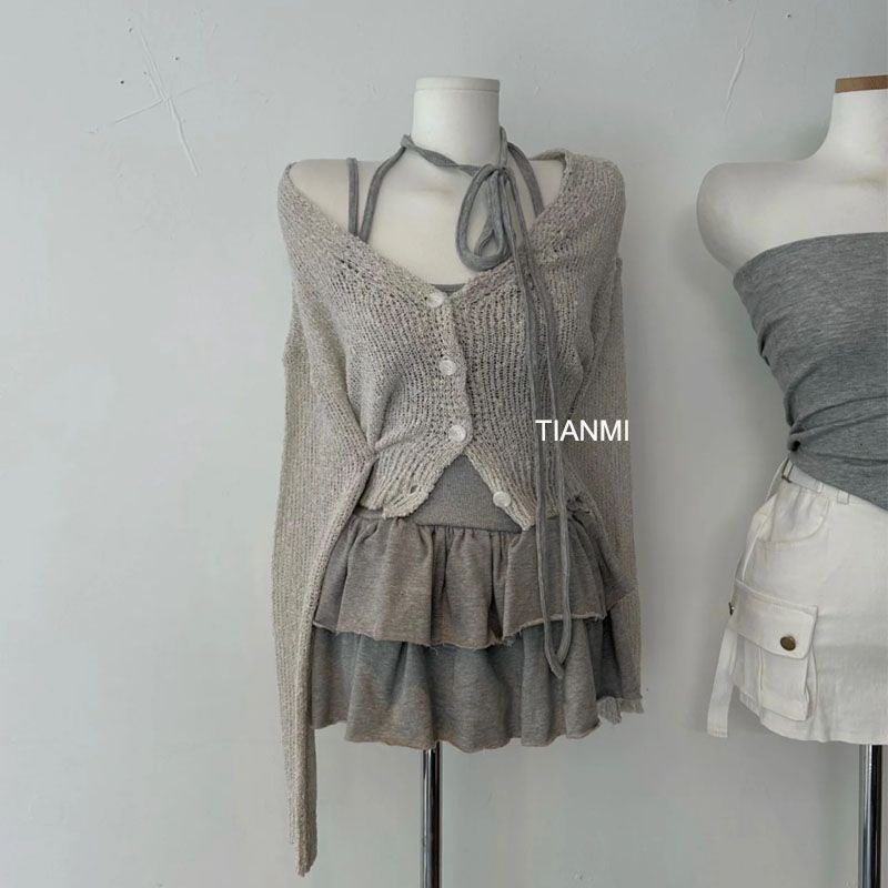 | nameOriginal | Autumn Gentle Wear Women's Set of 2023 New Korean Knitted Cardigan Sling Skirt Three-Piece Set |