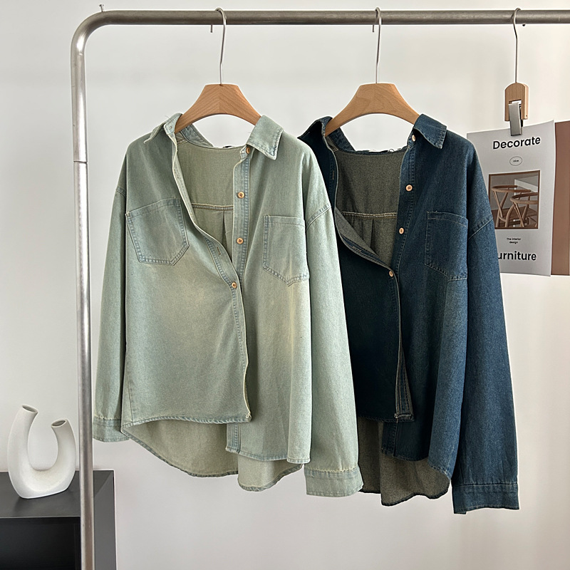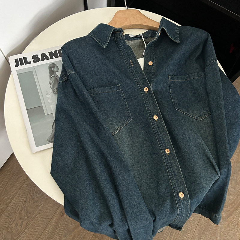 | nameOriginal | Retro loose American long sleeve Denim shirt 2024 spring new slimming design pocket top coat |