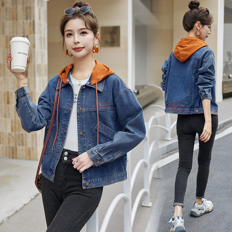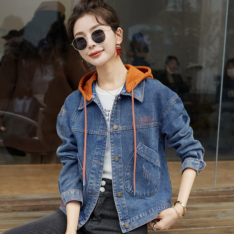 | nameOriginal | 2024 Spring and Autumn new women's loose hooded stitching fake two-piece Denim short coat plus size student jacket top |