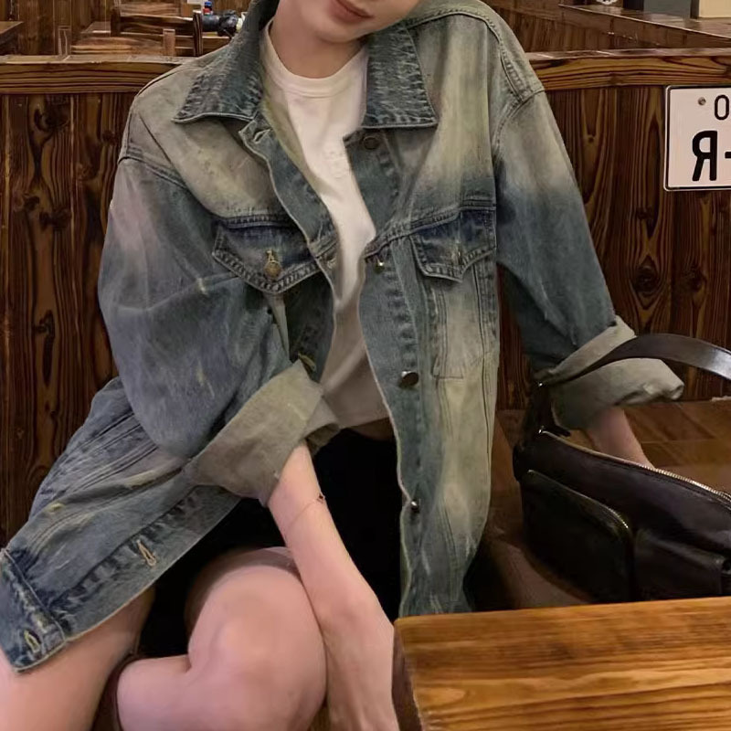 | nameOriginal | American Retro Washed Denim Jacket Women's Spring and Autumn 2024 New Explosions High-end Sense Loose Casual Jacket Top |