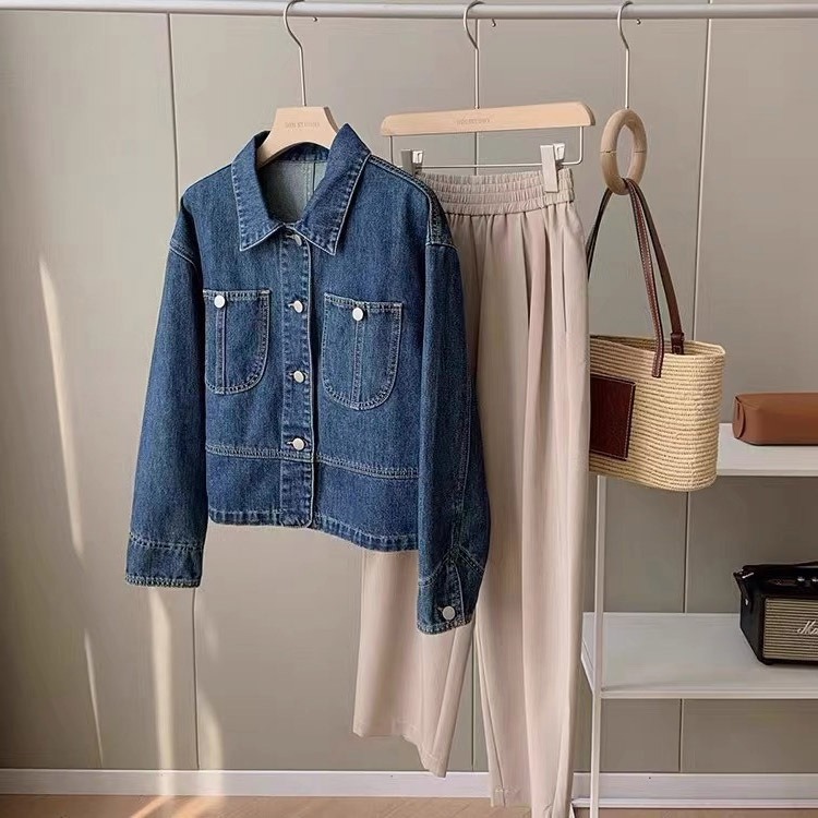 | nameOriginal | Hong Kong Style Retro Ming Line Denim Coat Women's Autumn New Design Niche Chic All-match Short Jacket Top |