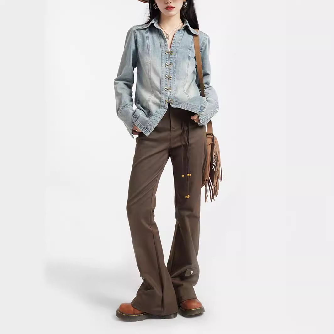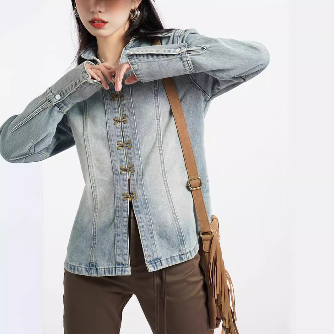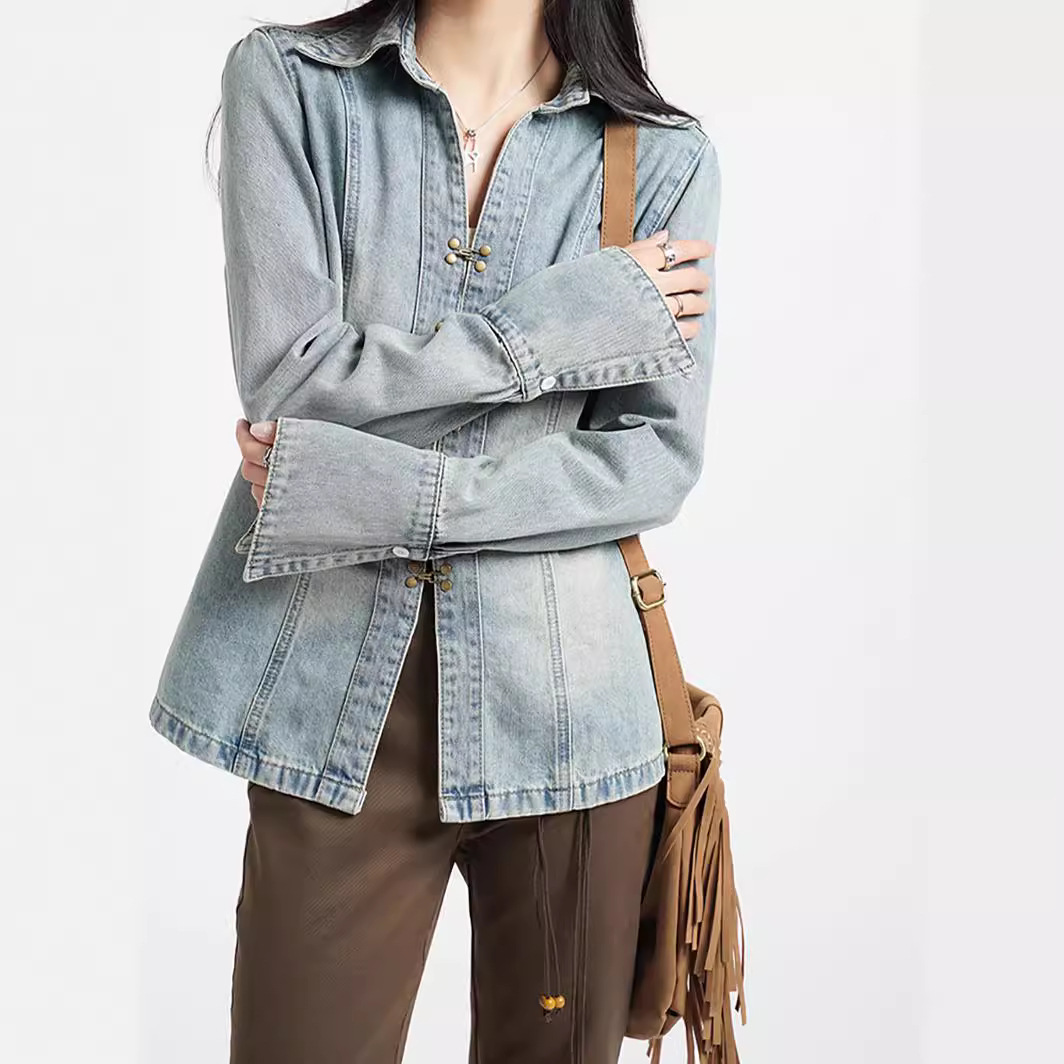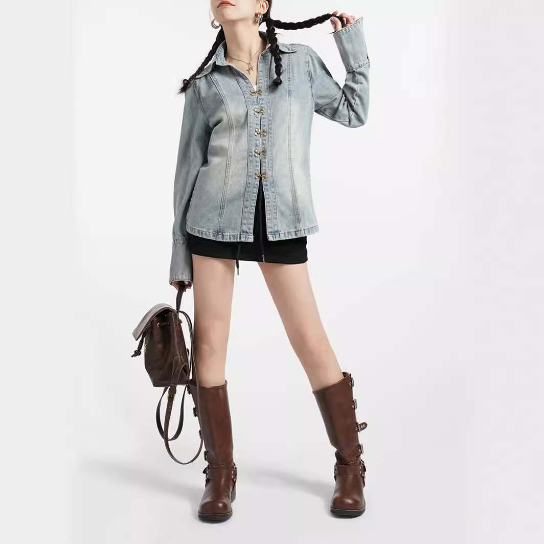 | nameOriginal | American Vintage Buckle Placket Denim Coat Women's Design Sense Niche Washed Old Denim Clothes |