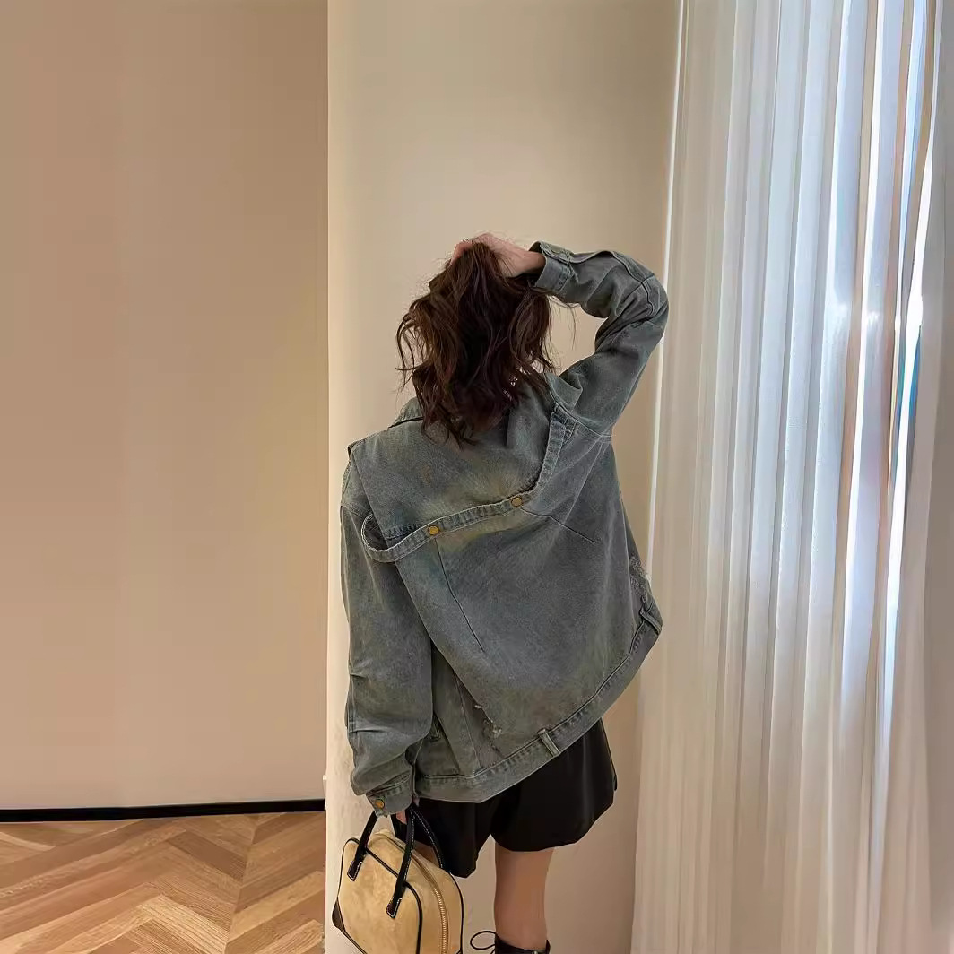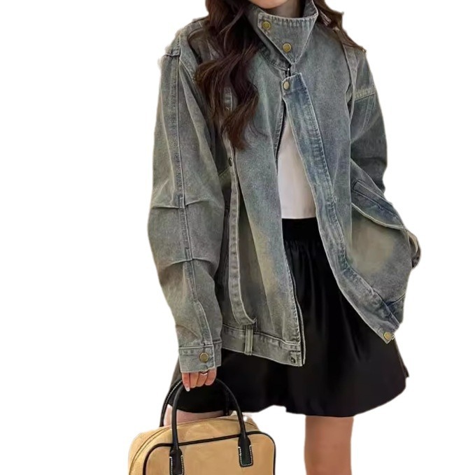 | nameOriginal | Retro niche design zipper loose washed Denim coat women's thin high street jacket top 2024 spring and autumn |