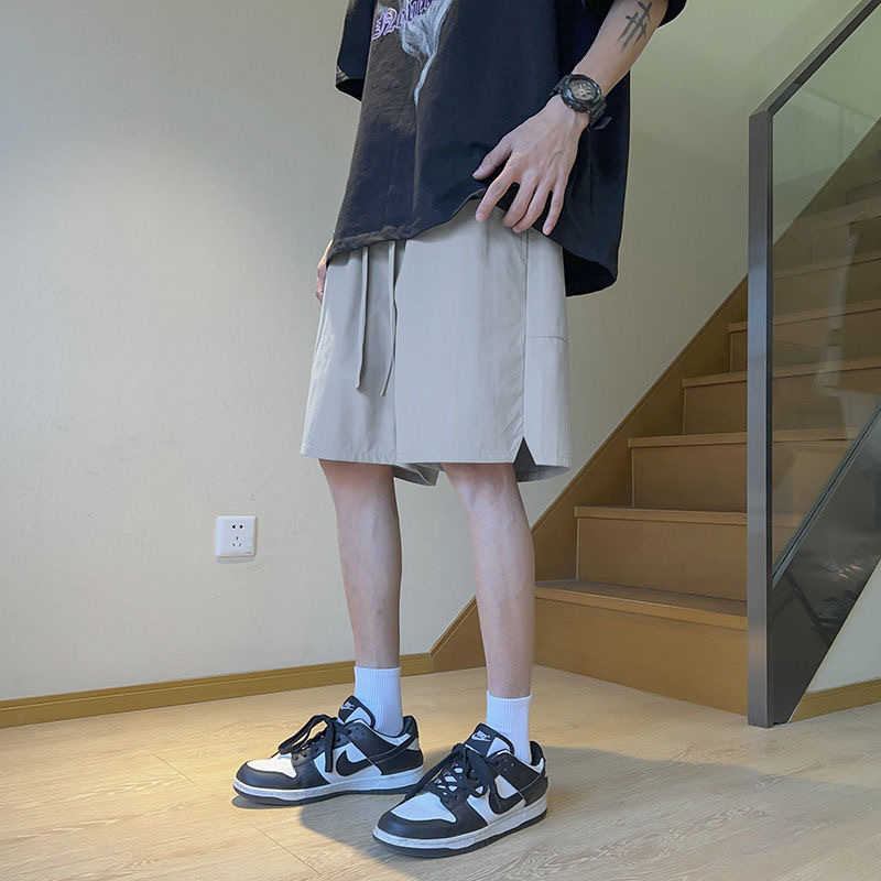 Summer Unisex Straight Leg Pants Loose Sports Casual Pants Five-point Straight All-match Solid Color Simple ins1