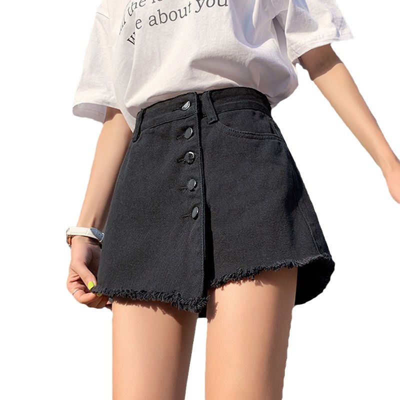 | nameOriginal | Denim shorts women's summer 2024 spring and summer new high waist loose wide leg hot pants A- line black pantskirt fake two-piece ins |