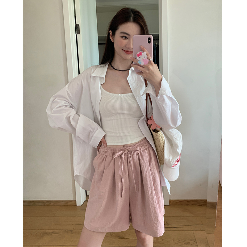 | nameOriginal | High Waist Solid Color Milk Leather Pants Women's 2024 Summer New Slim Look Loose Wide Leg Pants Drawstring Transport |