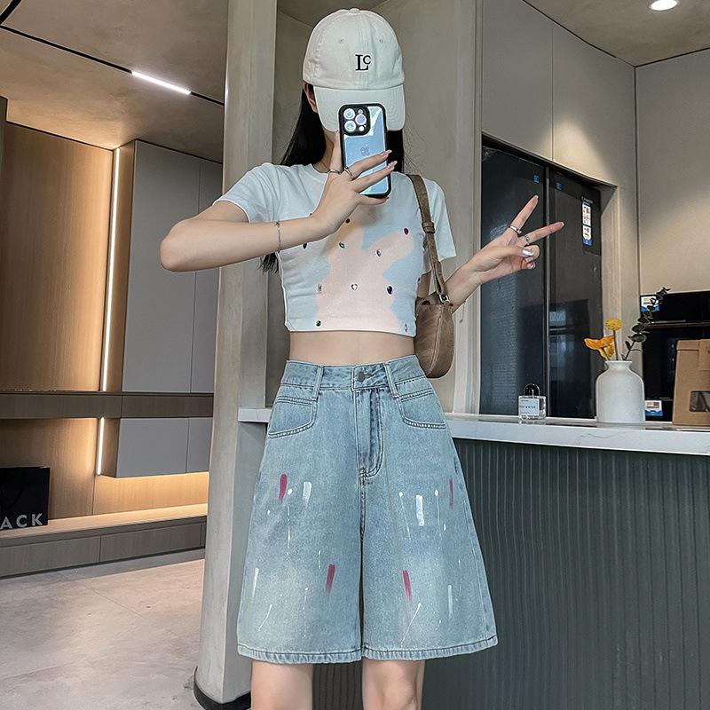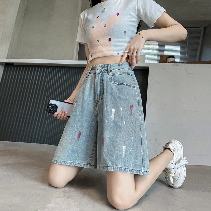 | nameOriginal | Five Points Denim Shorts Women's Summer 2024 New High Waist Loose Cool Oil Painted Design Sense Medium Pants |