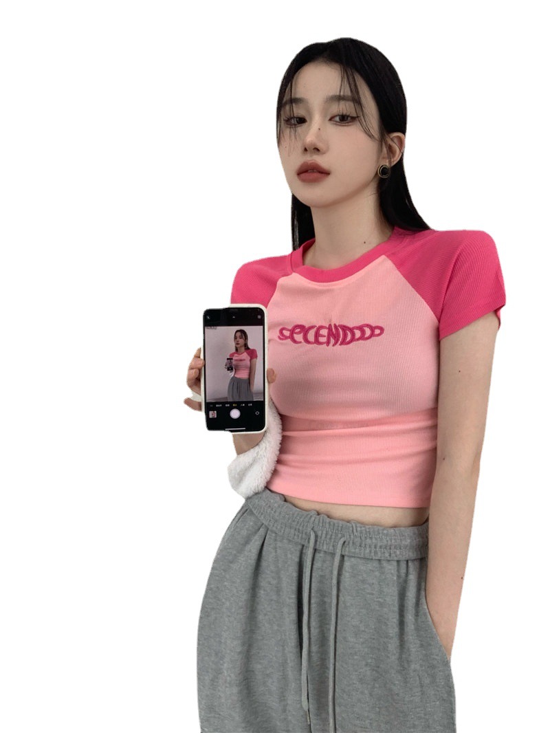 | nameOriginal | Short-sleeved T-shirt Women's Summer 2024 New European Goods Short Slim-fit Tight Sweet and Spicy Spice Girl Top |