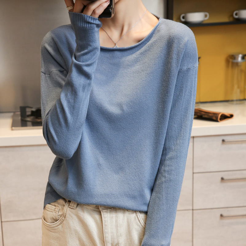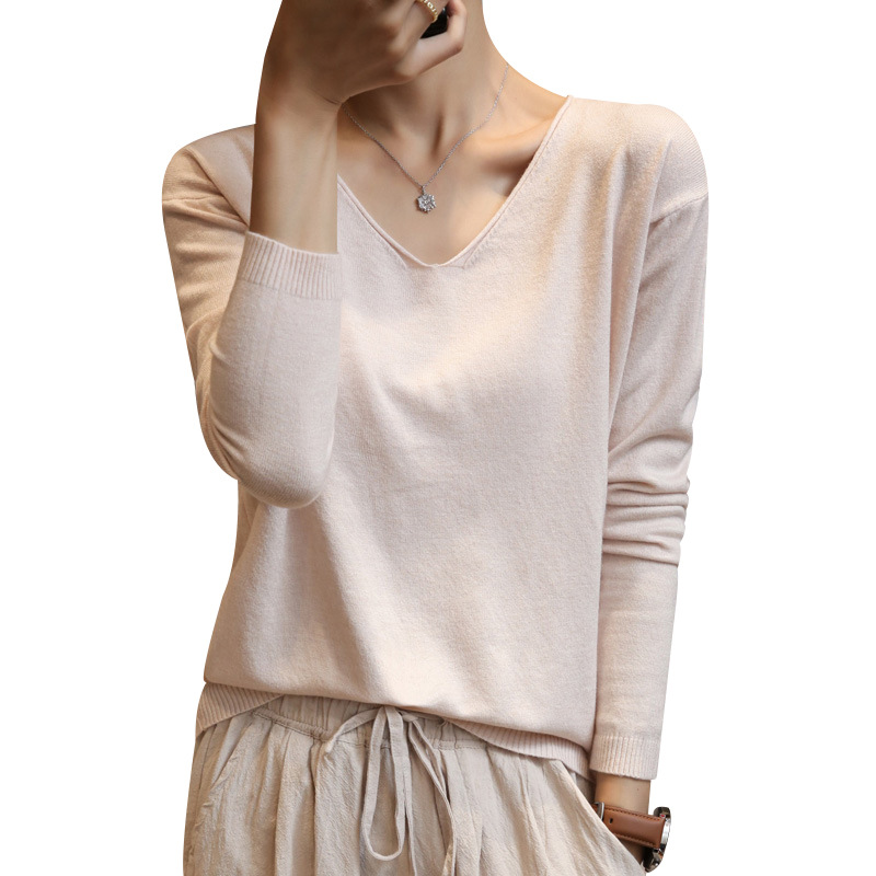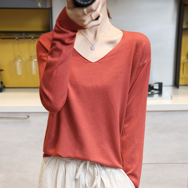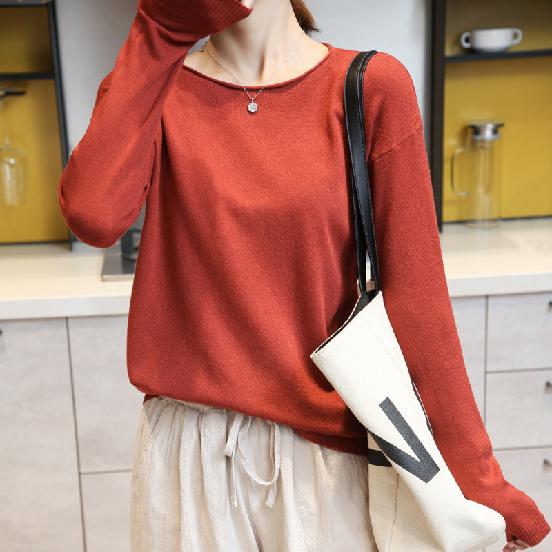 | nameOriginal | Loose round neck pullover knitted sweater women's loose plus size student slimming solid color V-neck thin bottoming shirt top |