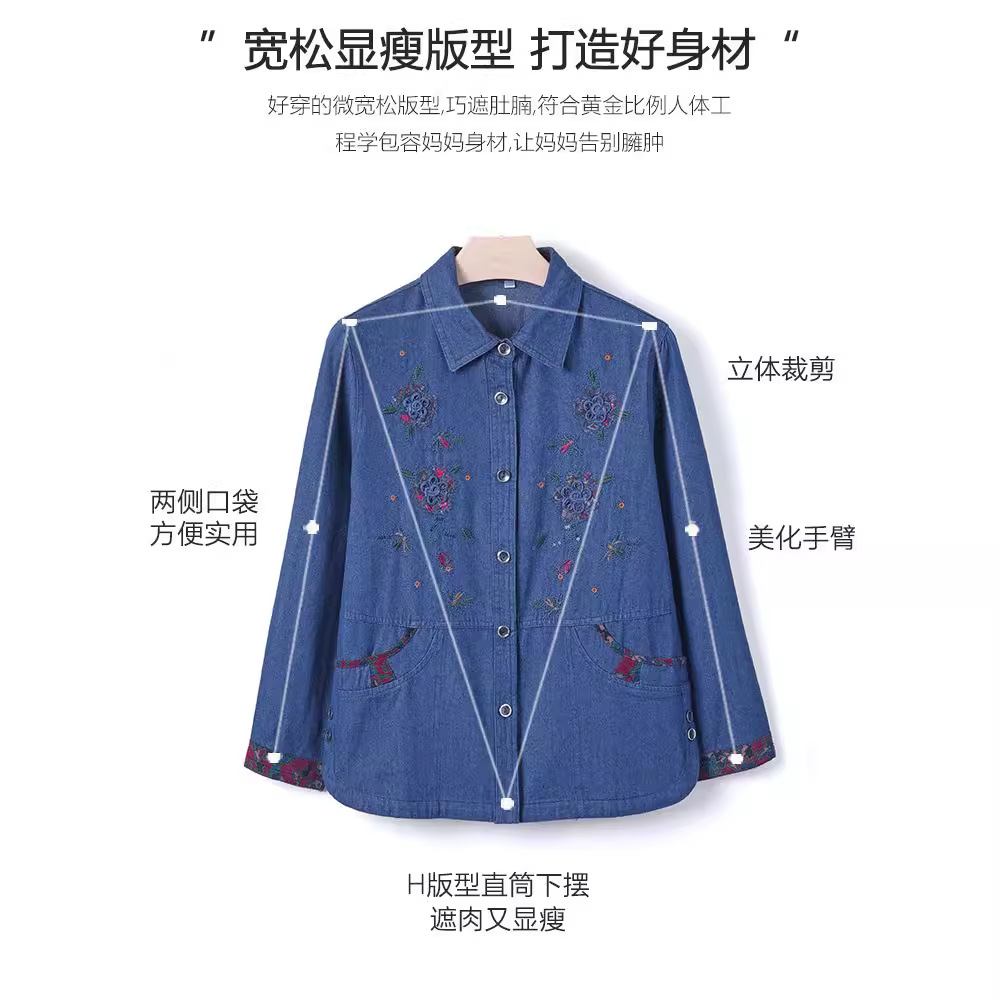 | nameOriginal | Middle-aged and Elderly Spring Embroidered Denim Coat Middle-aged Women's New Age-reducing Shirt Western Style Mother's Spring Top |