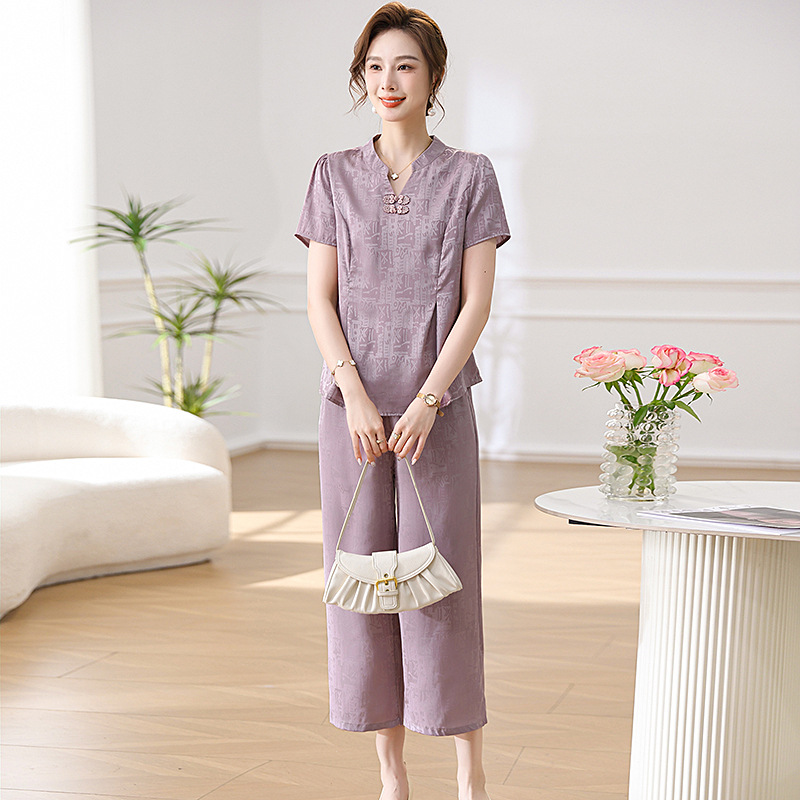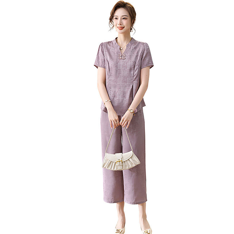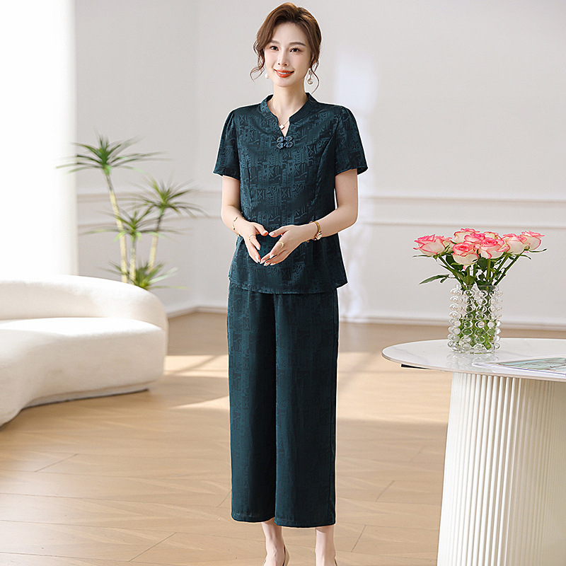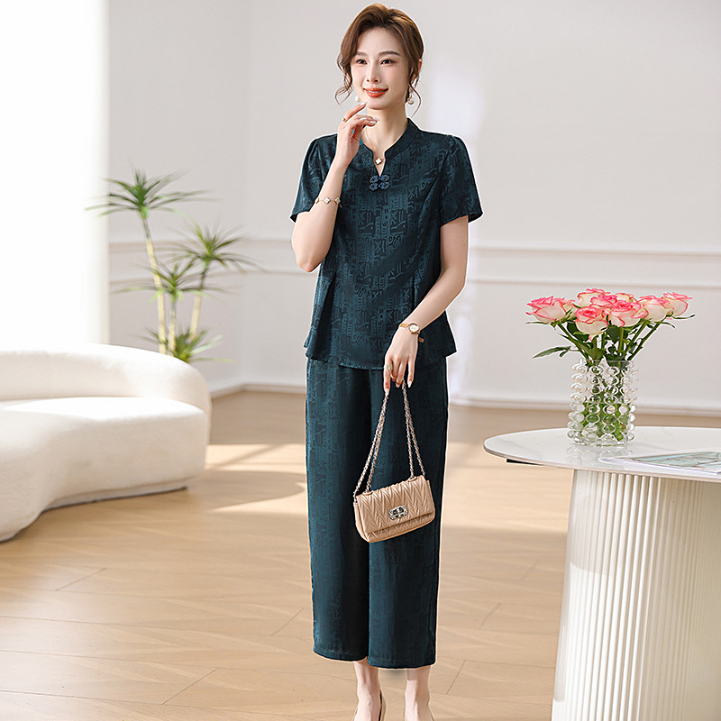 | nameOriginal | New Chinese Style suit Mother Clothes Summer Elegant Clothes Western Style Noble Middle-aged and Elderly Women's Short-sleeved Small Shirt Wide-leg Pants |