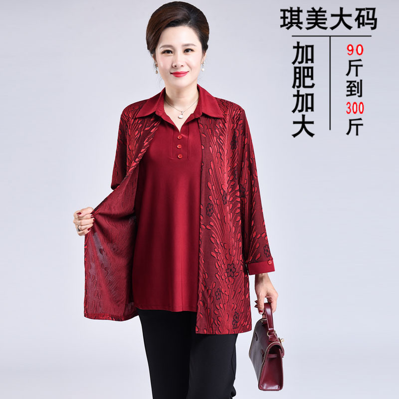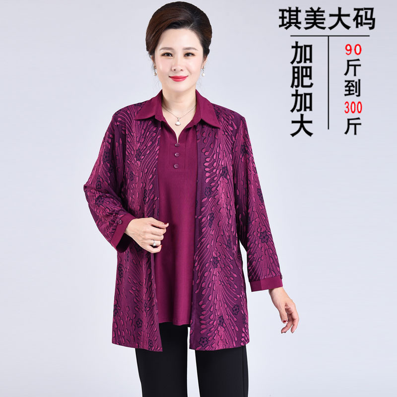| nameOriginal | 200kg fat mother middle-aged and elderly plus fat fashion plus size women's grandma fake two spring long sleeve shirt cardigan |