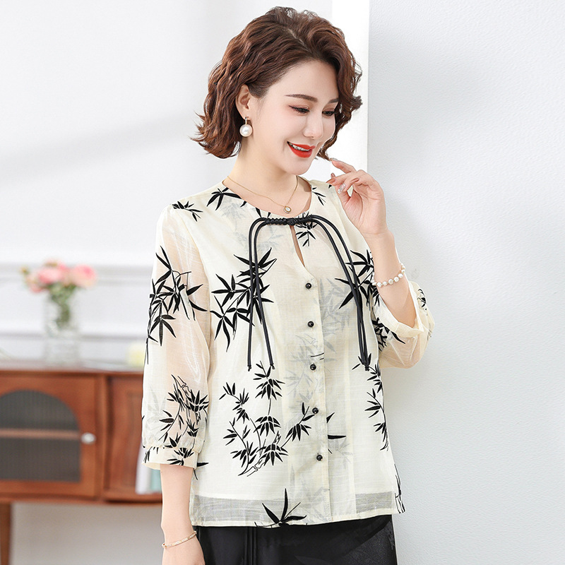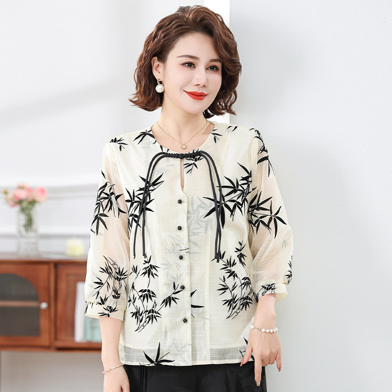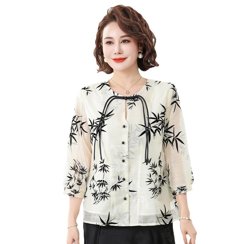 | nameOriginal | New Chinese Style Mother's Summer Chiffon Shirt Seven-point Sleeve Printed Buckle Middle-aged and Elderly Women's Summer New Trendy Small Shirt |