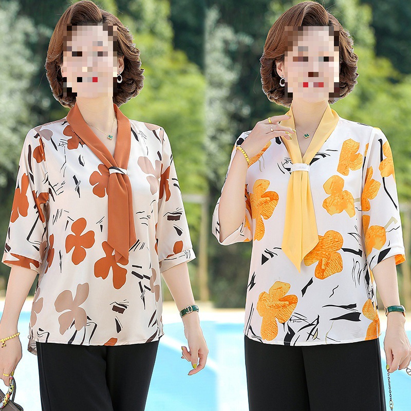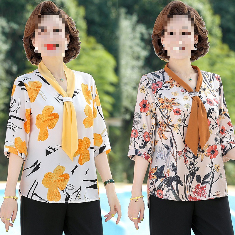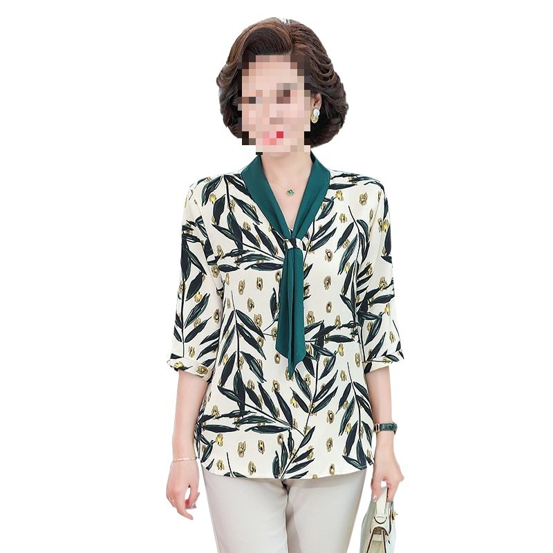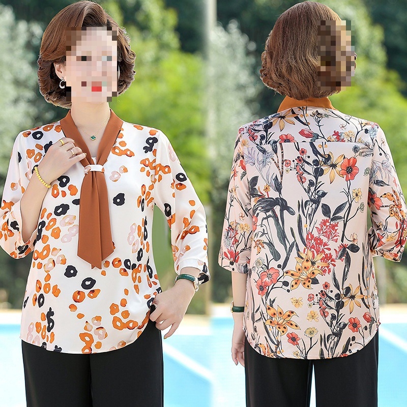 | nameOriginal | Middle-aged mother's spring and autumn mother's summer chiffon shirt western style long sleeve 50 middle-aged women's spring shirt |
