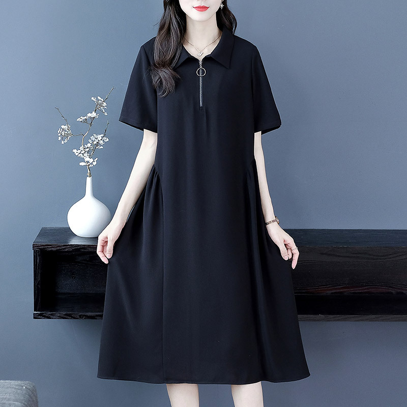 | nameOriginal | 2024 Summer new casual lapel POLO zipper short sleeve loose plus size chubby girl plus size dress women's clothing |