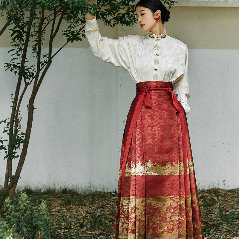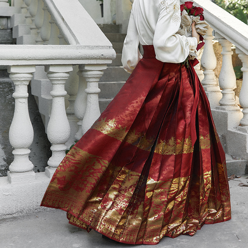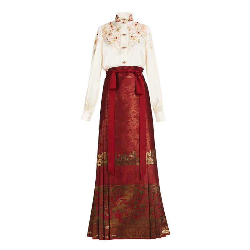 | nameOriginal | Yunjin [Xiaofeng] Vertical collar cardigan heavy industry shirt New Chinese red vest skirt Hanfu women's Toast dress wedding dress |