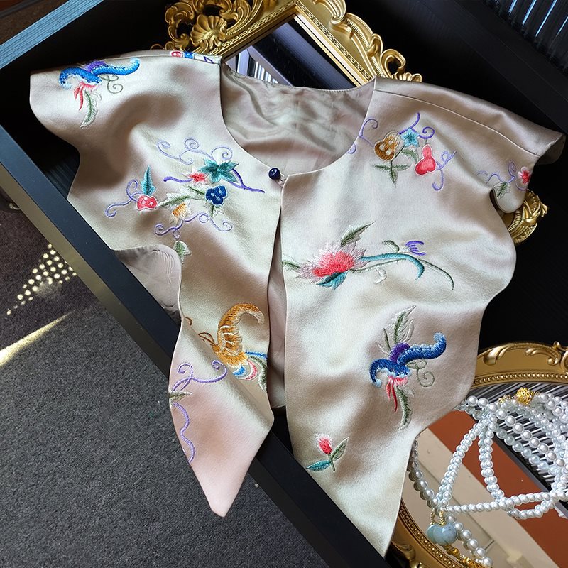 | nameOriginal | Chinese-style Fake Collar Wearing Stacked Embroidered Acetic Acid High-grade Vintage Women's Design Niche Satin Shoulder with Shawl |