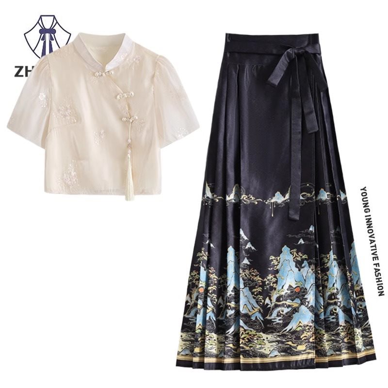 | nameOriginal | Small New Chinese Zen Top Horse-faced Skirt suit 2024 Women's Summer a Set of Improved Hanfu Daily Wear |