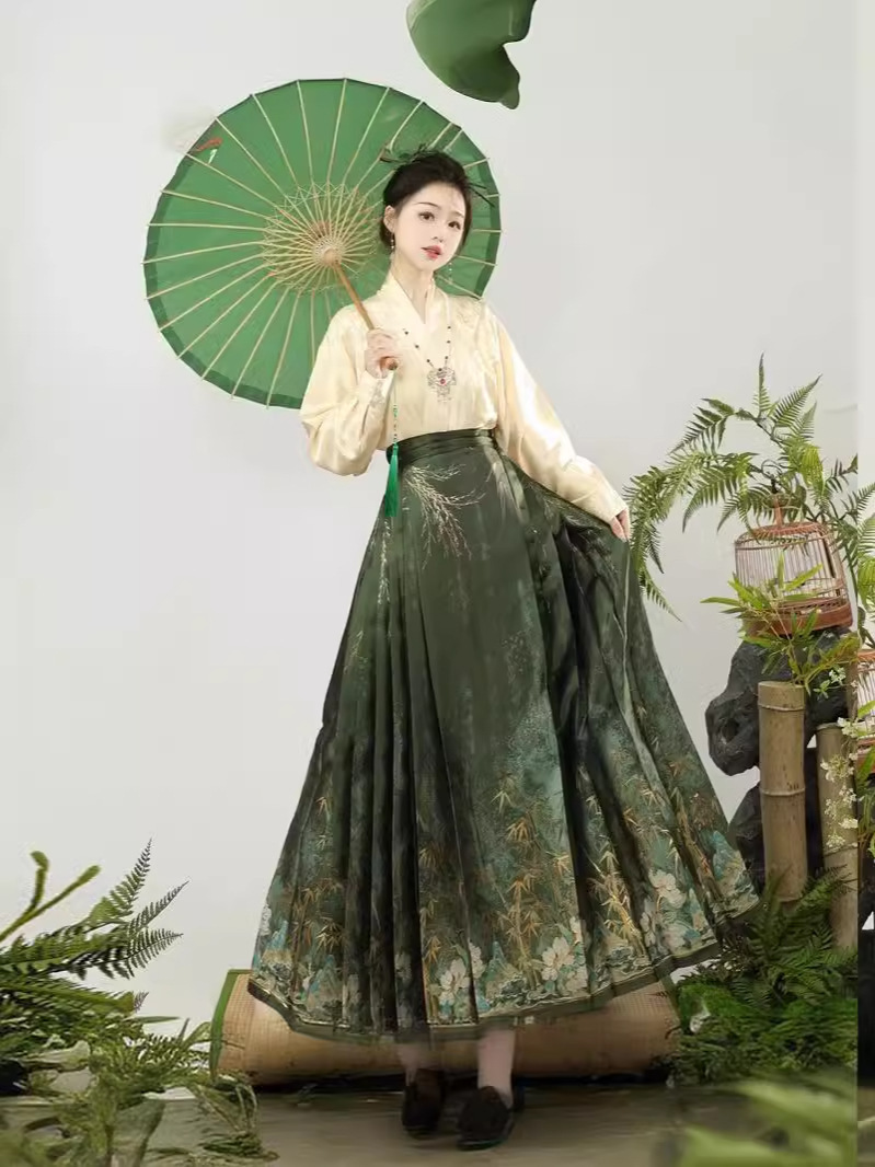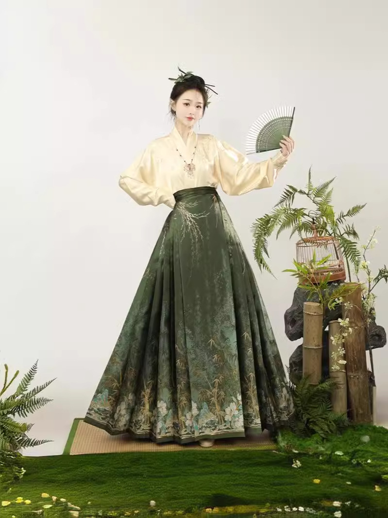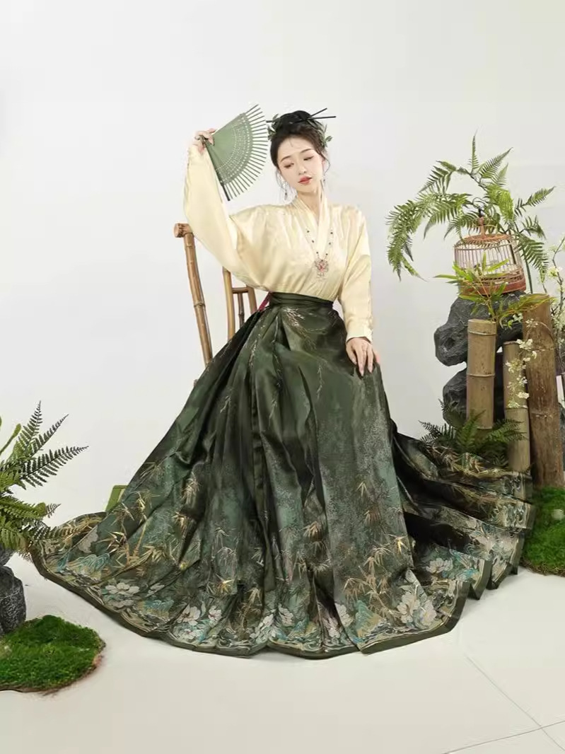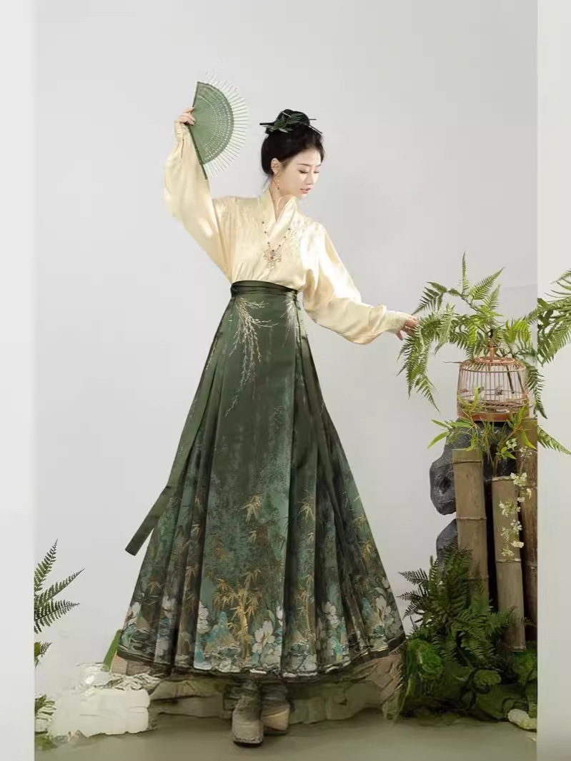 | nameOriginal | Original Guofeng horse-faced skirt [bamboo shadow] with Ming-made Han-style embroidered cross-collar aircraft sleeve for daily use |