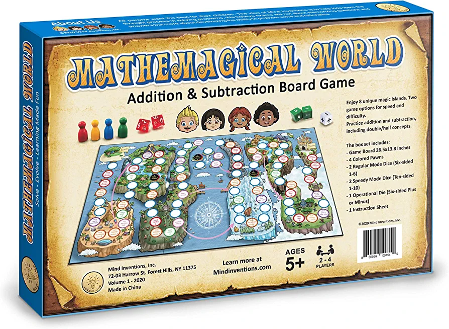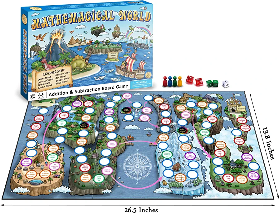 | nameOriginal | Mathemagical World – Addition & Subtraction Math Board Game for Kids, Ages 5+ and Perfect for Homeschool, Kindergarten, Pre-k, and Gifted & Talented Prep |