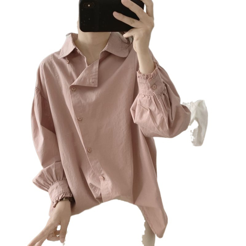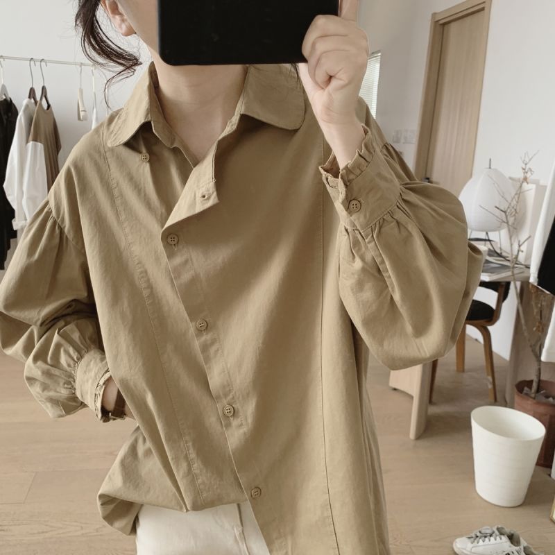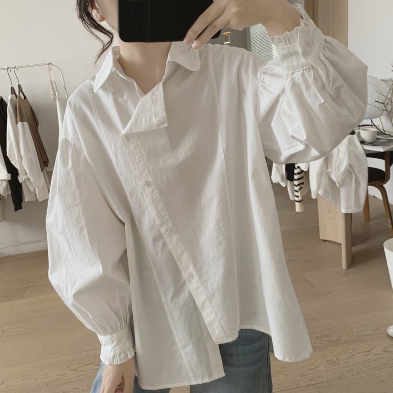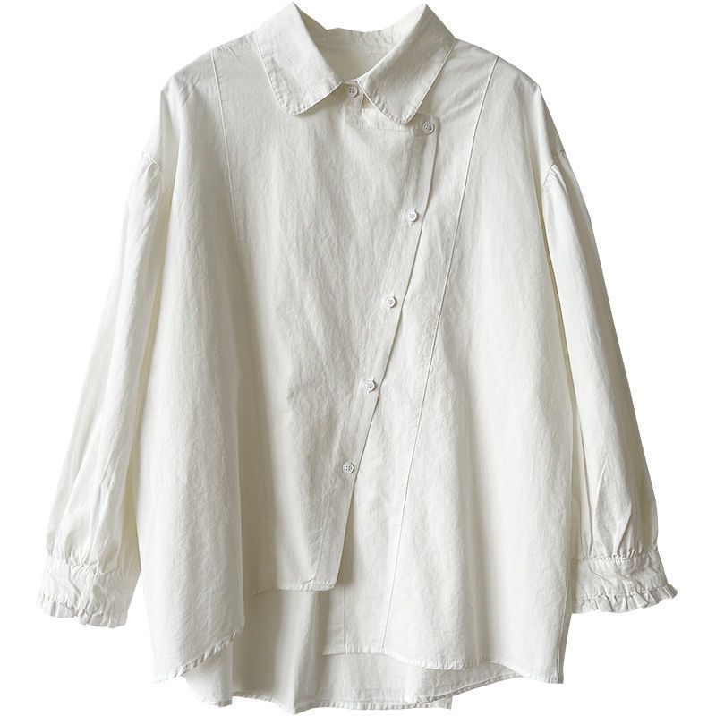 | nameOriginal | Time Jane's Shirt Irregular Shirt Women's Spring and Autumn New Short Front and Back Long Lantern Sleeve Cotton Long Sleeve Top Hot |